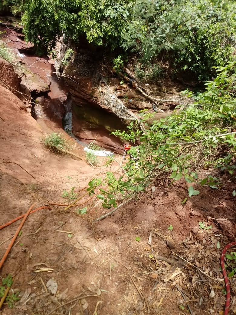 Chegando ao local, verificou-se que a vítima estava em óbito, próximo a um córrego 15 metros abaixo do nível do solo situado nos fundos de um conjunto de chácaras. O resgate então foi planejado e realizado com a aplicação de técnicas de salvamento vertical. Dentre as diversas ações para cumprir a missão, houve a descida de dois bombeiros militares por rapel, que preparam o corpo acondicionando-o em uma maca apropriada para salvamento, realizaram as fixações, nós e amarrações compatíveis com as necessidades do caso, além de criarem mecanismo para liberação de possíveis obstáculos durante a subida. Simultaneamente, na superfície (nível zero do terreno), o restante da guarnição montou um sistema de multiplicação de força com uso de polias e cordas, permitindo a elevação da vítima, que foi entregue ao Instituto Médico Legal.