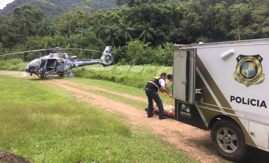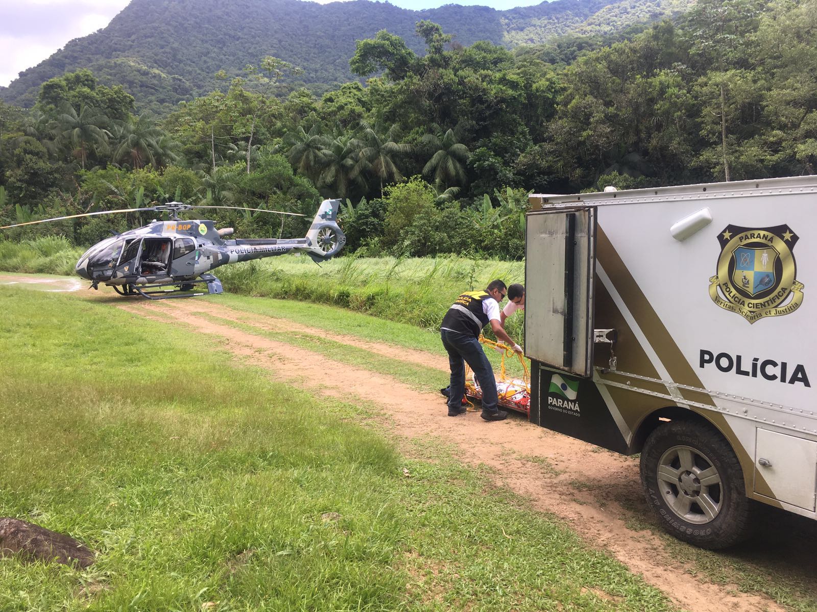 Devido à dificuldade de acesso ao local, que inclui um trecho de cerca de 40 minutos por trilhas na mata, foi acionado a apoio do helicóptero do Batalhão Policial Militar de Operações Aéreas – BPMOA que realizou a remoção do corpo do rapaz até um local acessível para veículos. As vítimas localizadas foram entregues ao IML e encaminhadas para Paranaguá.