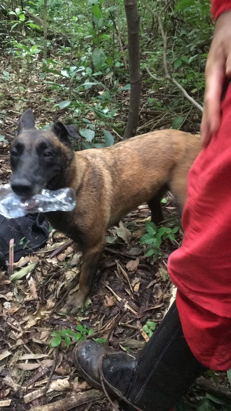 Por volta das 17h20min do dia 18 a vítima foi encontrada, pelo binômio Kira e Cb. Berzotti com técnica de venteio, mostrando a grande eficiência deste recurso, considerando que estava em um local bastante diverso de onde estavam sendo realizadas as buscas.