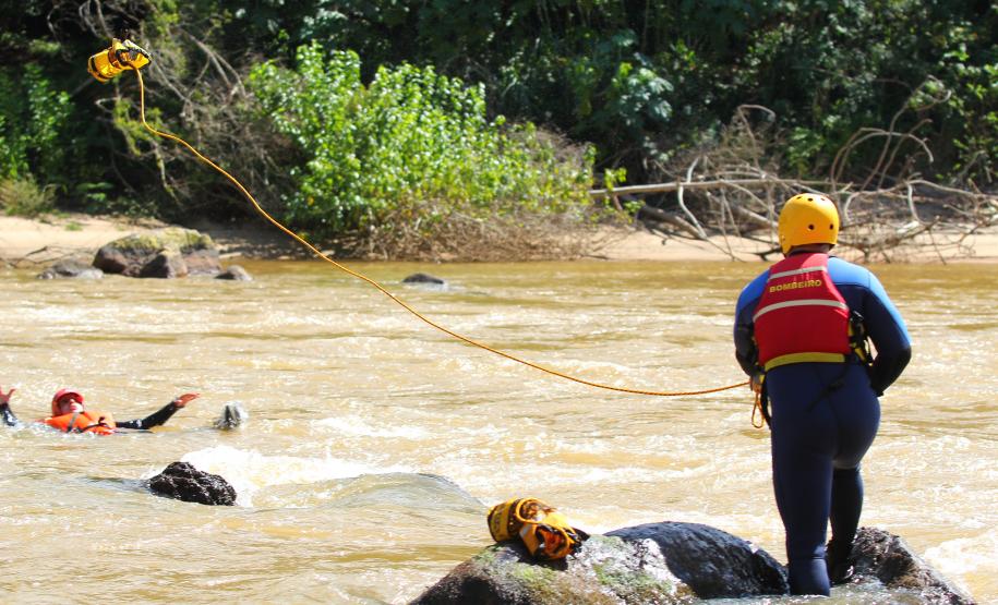 Houve demonstrações de técnicas de lançamento de cabos para as vítimas que estão sendo carregadas pela correnteza, técnicas de remo, transposição de corredeiras, técnicas de descida da corredeira com e sem embarcação, técnicas de resgate utilizando a embarcação e o próprio bombeiro, natação equipado, etc.