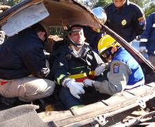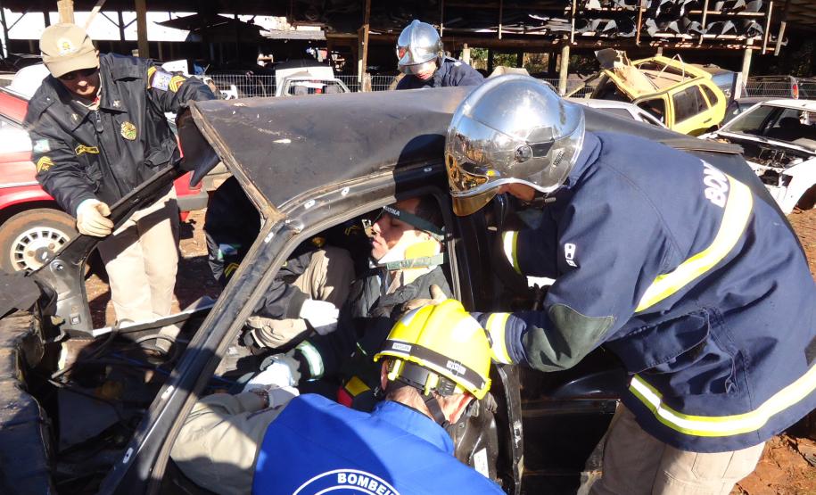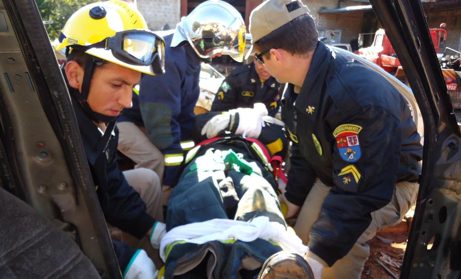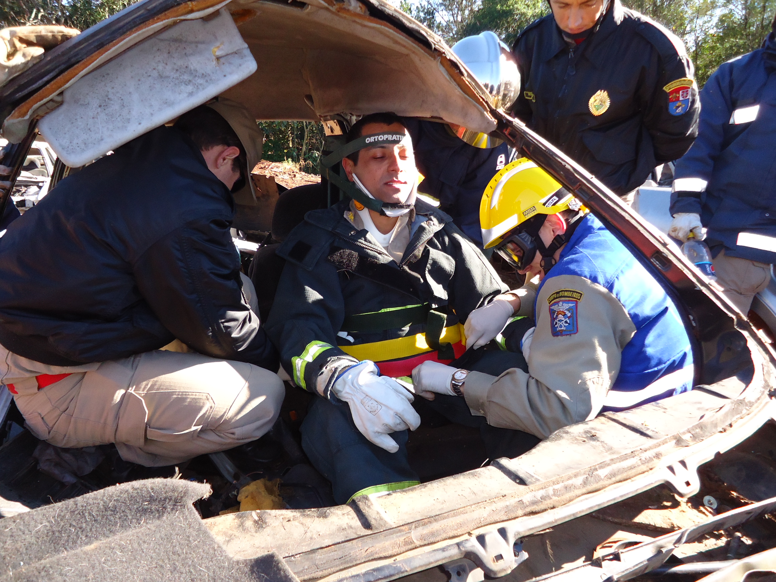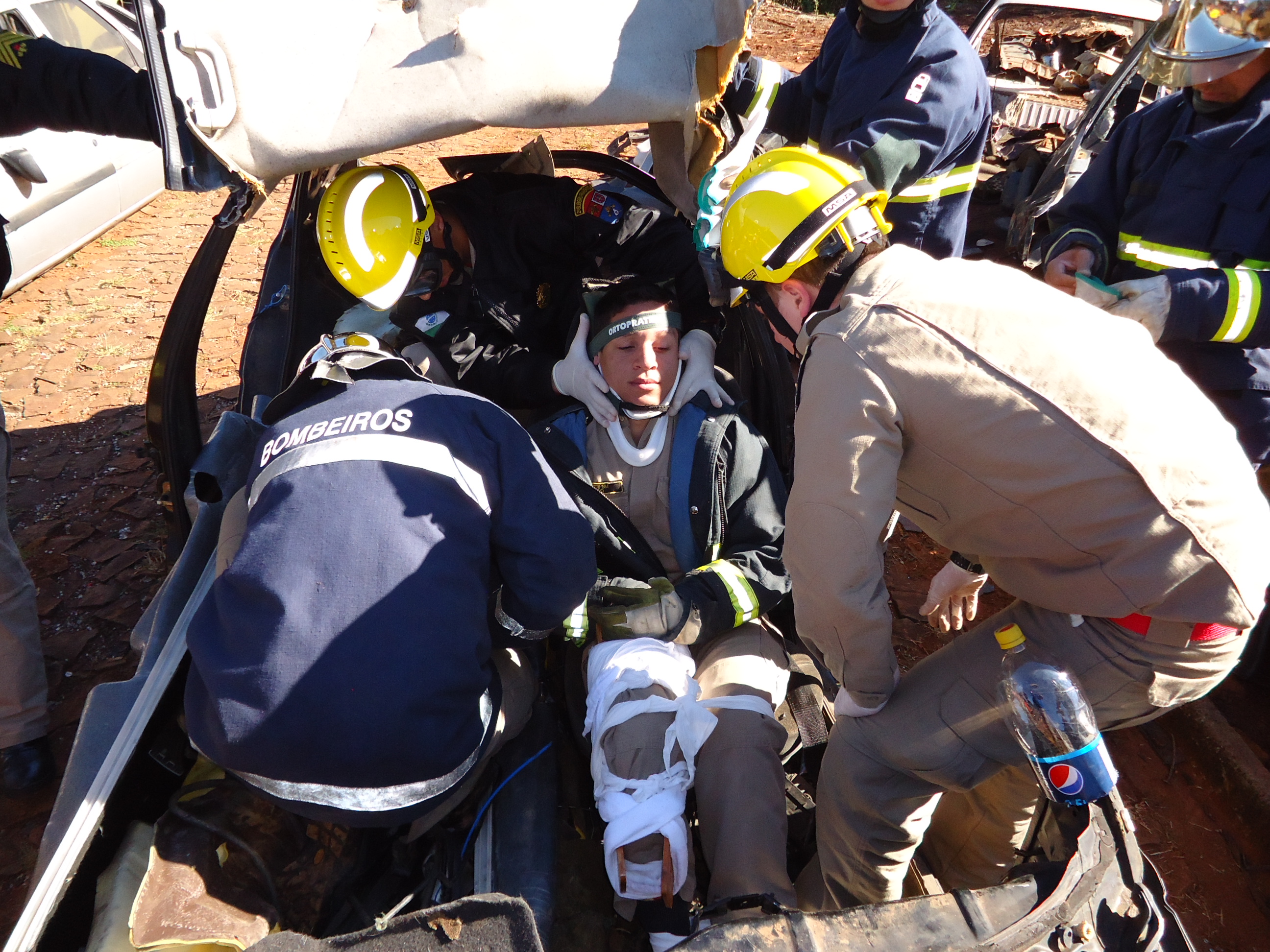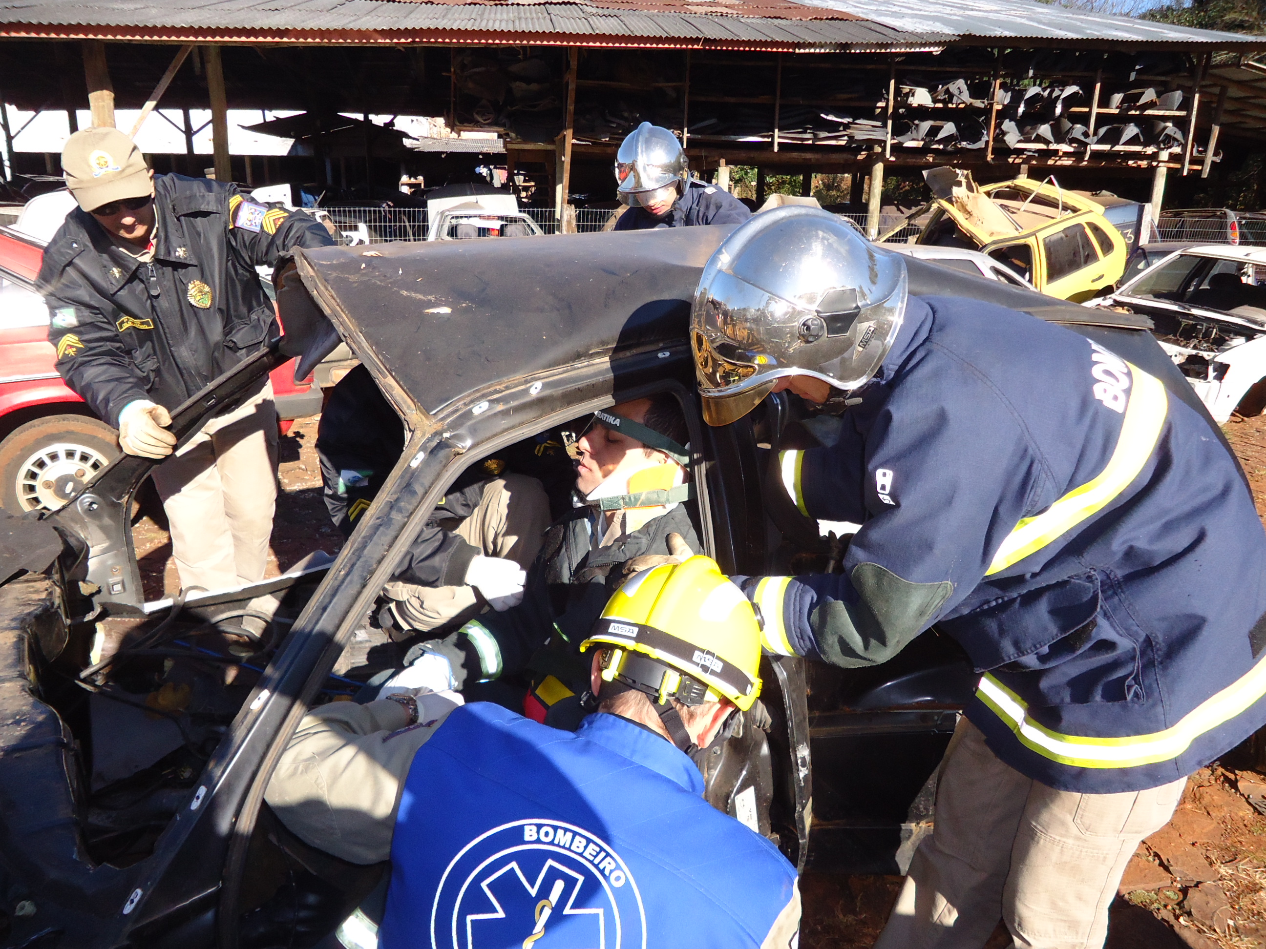 Neste dia, foi realizado um simulando com vítima presa e encarcerada nas ferragens. Foram utilizadas técnicas de resgate veicular e atendimento pré-hospitalar.
