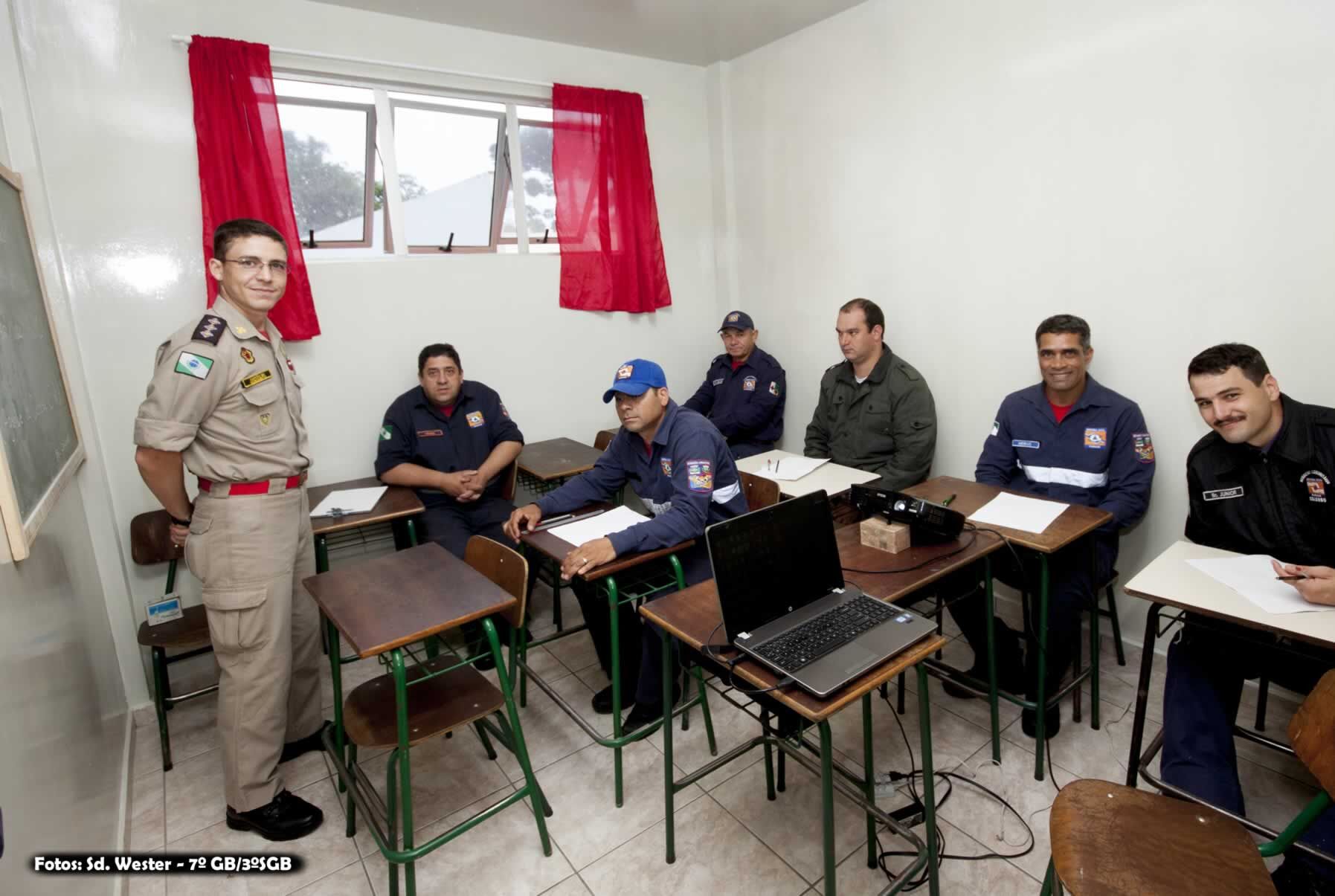 Na manhã do dia 16 de novembro de 2015, o Ten.-Cel. Ricardo Silva, Comandante do 7º Grupamento de Bombeiros, ministrou a aula inaugural do Curso de Capacitação dos Agentes de Defesa Civil no Quartel de Campina Grande do Sul / Quatro Barras pertencente ao 3° Subgrupamento de Bombeiros do 7°GB. “Esse curso ocorre graças ao esforço do 7ºGB, que entende a necessidade de instrução e capacitação àqueles que já estão a mais de dez anos trabalhando por nossa Corporação” ressalta o Comandante.