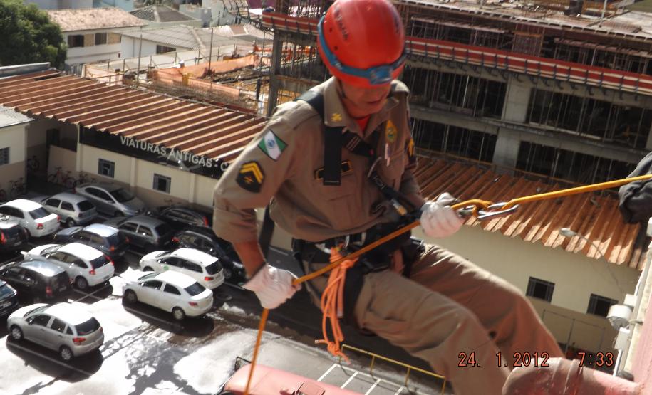 Nesta segunda-feira, 6 de abril de 2015, o 1º Grupamento de Bombeiros realizou a Formatura de Capacitação em Salvamento em Altura, com 14 (quatorze) bombeiros militares, das Unidades do 1º e 6º Grupamento de Bombeiros e Grupo de Operações de Socorro Tático, que teve por finalidade preparar o militar, dotando-o de conhecimentos profissionais necessários ao exercício das funções próprias inerentes à atividade vertical nas suas diversas possibilidades de cenários acidentais, como edifícios altos, suicidas, torres de alta tensão, plantas industriais, espaços confinados, rodovias, salvamento em incêndios, telhados, e acesso por corda.