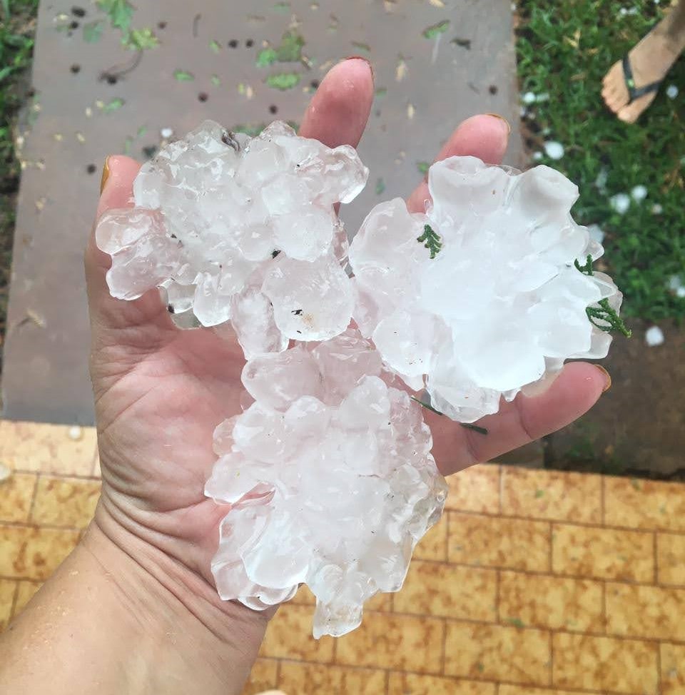 Quartel Central do 5ºGB (24/05/2021) - No final da tarde de sábado(22), uma forte chuva com precipitação de granizo atingiu a região de Campo Mourão, situação agravada pela forte ventania. No distrito de Piquirivaí (10km de distância sentido Mamborê) caíram pedras de gelo equivalentes a bolas de tênis- veja imagens abaixo- o que gerou maiores estragos e prejuízos para a população.