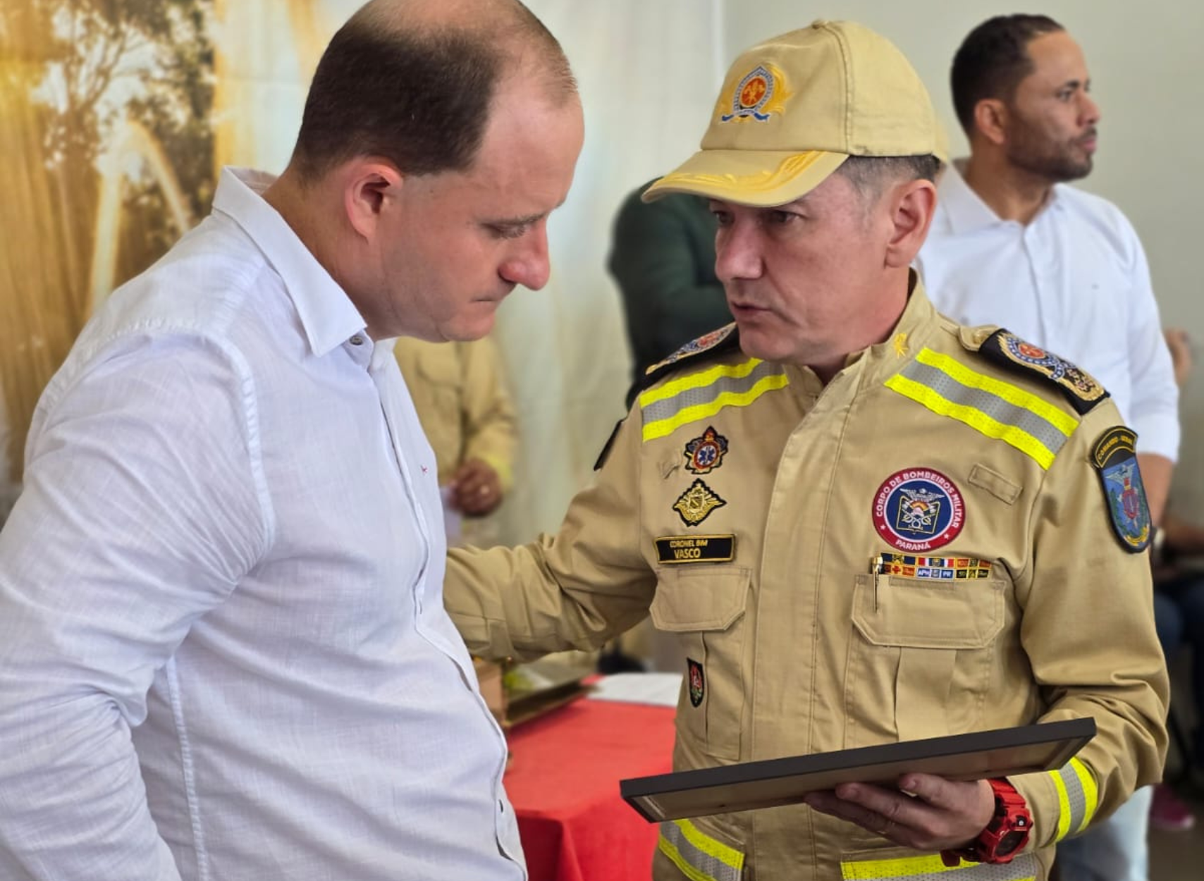Além do parlamentar, a solenidade contou com a presença do Secretário de Segurança Pública do Paraná, Coronel Hudson Leôncio Teixeira, do Comandante -Geral do Corpo de Bombeiros Militar do Paraná, Coronel QOBM Manoel Vasco de Figueiredo Junior, do Prefeito de Santa Helena, Evandro Miguel Grade, do Ten.-Cel Rogério Lima De Araujo, Respondendo pelo Comando do 3ºCRBM, do Comandante do 9º Batalhão Bombeiro Militar Ten.-Cel Edson Leonel Rodrigues e demais autoridades civis e militares da região.