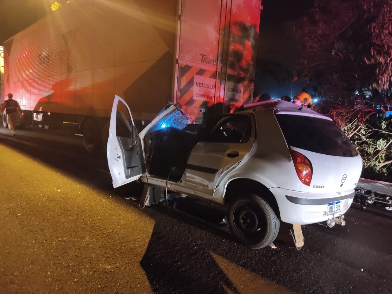 Constatou-se a colisão do auto ocupado por quatro pessoas contra a traseira do veículo pesado. Segundo informações do motorista do caminhão, a carreta estava parada no acostamento da avenida Major Abelardo José Cruz.