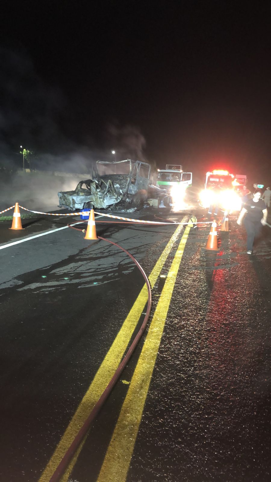 O Samu atendeu o condutor do caminhão, e o encaminhou para um hospital da região. Em paralelo, as equipes do Corpo de Bombeiros Militar realizaram o combate ao incêndio que foi bastante árduo em razão da queima de óleo de soja como principal combustível.