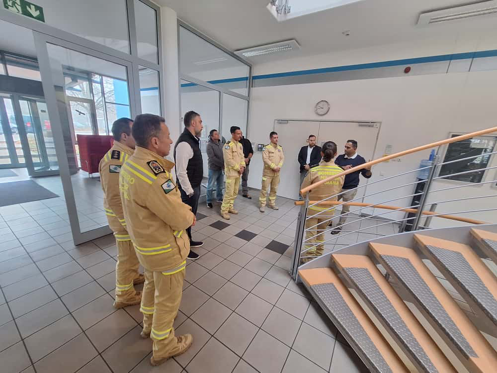 Uma comitiva do Corpo de Bombeiros Militar do Paraná (CBMPR), liderada pelo comandante-geral, coronel Antonio Geraldo Hiller Lino, esteve na Europa na última semana em uma série de visitas técnicas a fábricas especializadas na produção de equipamentos e viaturas para uso operacional de bombeiros. A programação, realizada ao longo de cinco dias, incluiu visitas às empresas Magirus e Bauer Kompressoren, na Alemanha, e Weber Hydraulik, na Áustria, além de uma visita institucional ao Corpo de Bombeiros da cidade de Ulm, no sul da Alemanha.