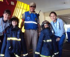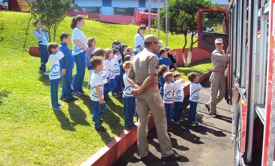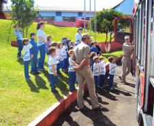 Já no dia 7 de outubro o quartel de Pato Branco recebeu a visita das crianças da Escola do SESC – Serviço Social do Comércio, ocasião em que elas tiveram oportunidade de conhecer as instalações, as viaturas, materiais e equipamentos utilizados pelos bombeiros.