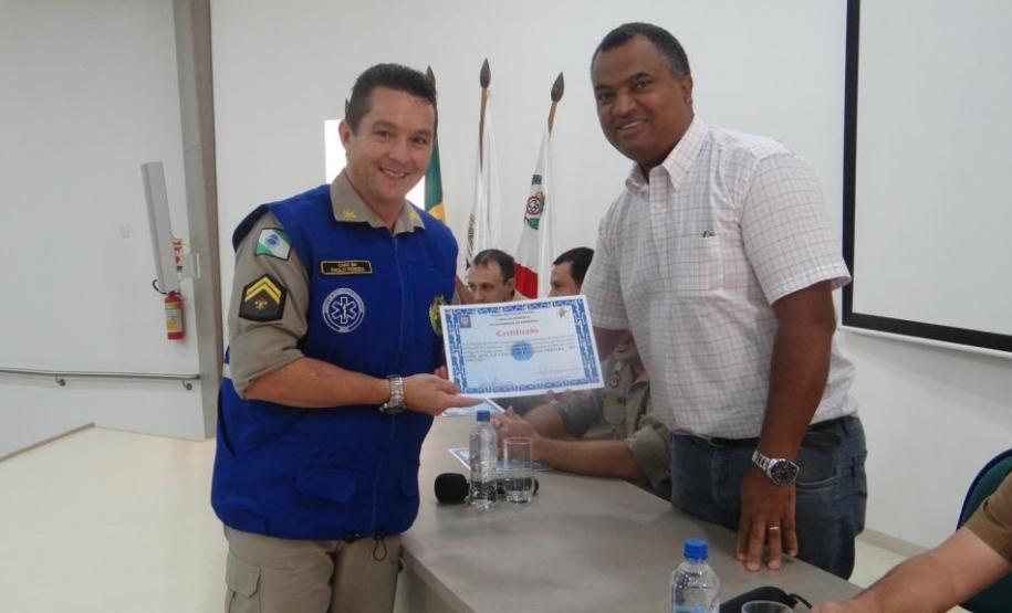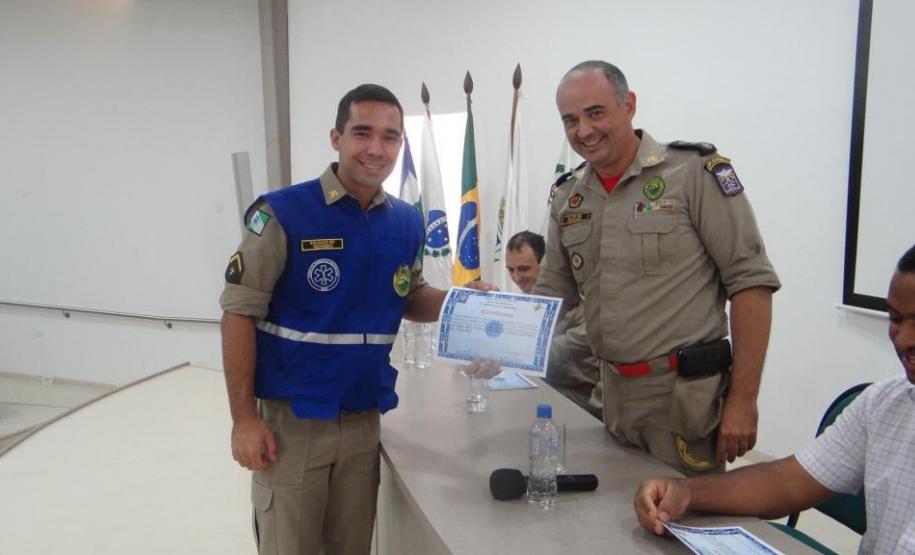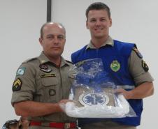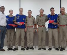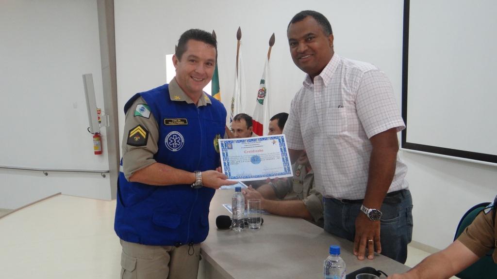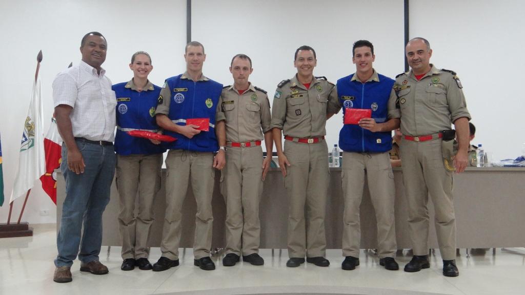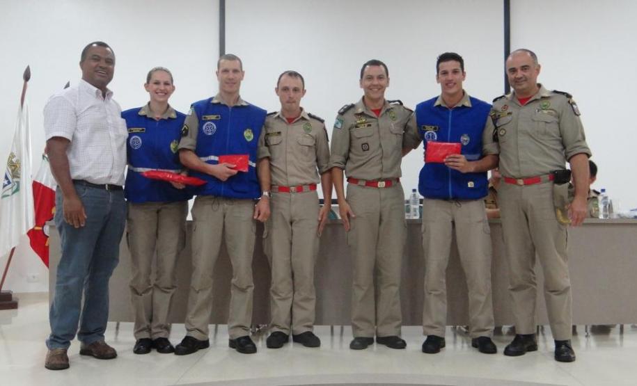 Foram também congratulados os primeiros colocados do curso: Soldado Wagner Mayer, terceiro colocado, Soldado Altieri Biondo, segundo colocado e a primeira colocada do Curso de Socorrista Soldado Ellen Caroline Chrun, através de uma lembrança. As entregas foram realizadas pelo Comandante do 4º Grupamento de Bombeiros, Major Fernando Raimundo Schunig, pelo Comandante do Corpo de Bombeiros de Toledo, Major Rogério Lima de Araújo, pelo Capitão Genuíno Luiz Dalponte, representando o Comando do 2° Subgrupamento de Bombeiros Independente e pelo Secretário de Desenvolvimento Econômico do município de Cascavel, Senhor Aparecido José Dias.