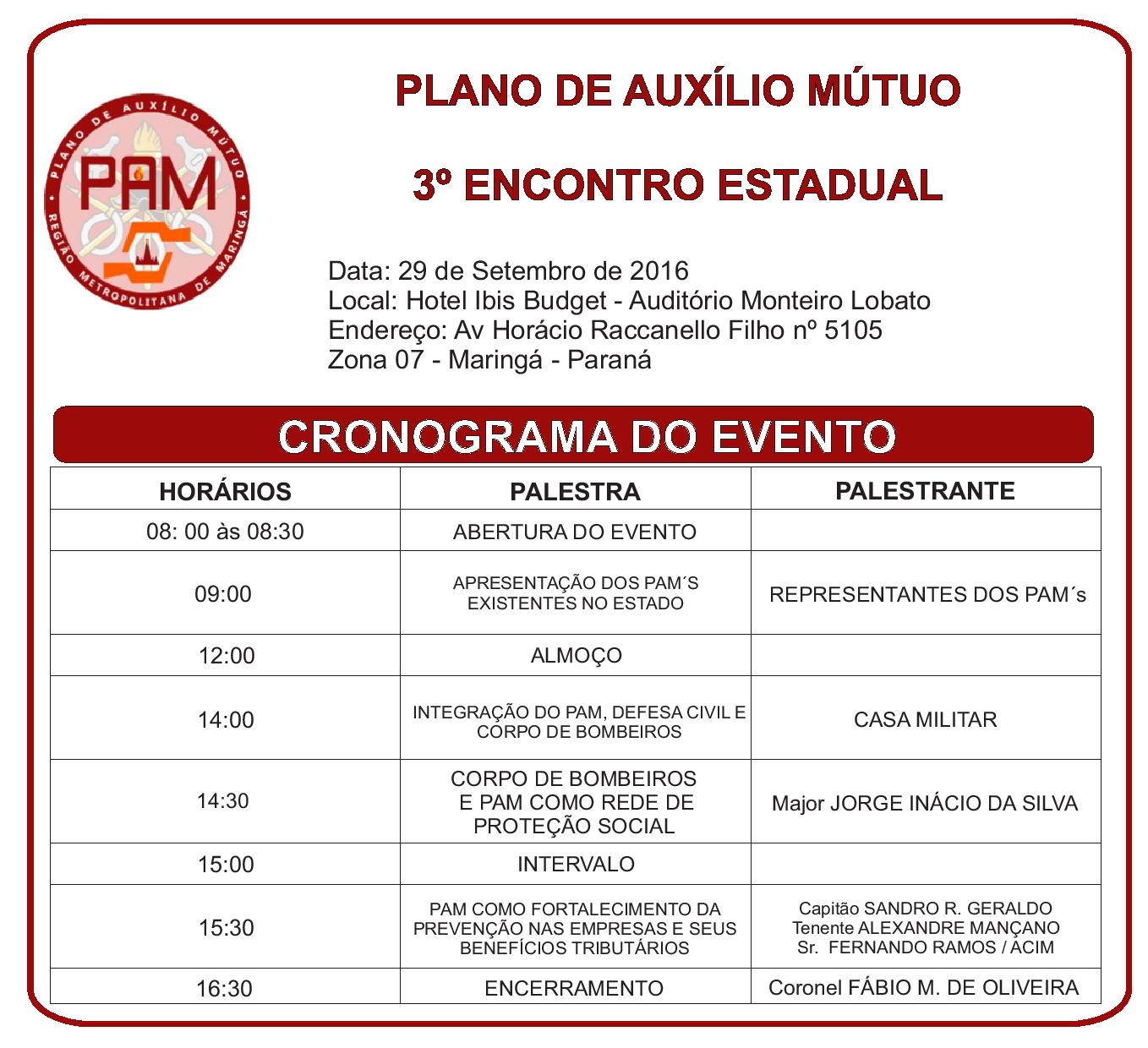 Convite para o PAM (Plano de Auxílio Mútuo) de Maringá 12/09/2016 - 16:42