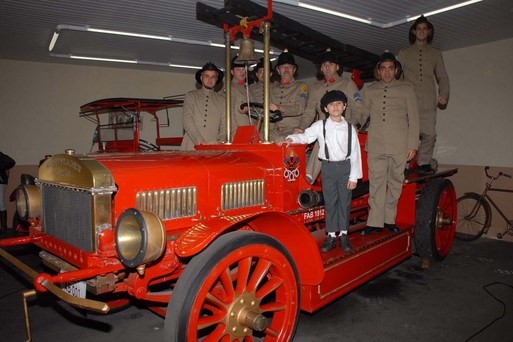 Na primeira cena foi apresentado o caminhão de combate a incêndios MerryWeather utilizado em 1920, o qual teve sua fabricação em Londres e veio para o Brasil como um meio de transporte, pois não contava com uma bomba e um reservatório de água próprios, ou seja, ele apenas transporta os bombeiros até o local de ocorrência e auxiliava no transporte das vítimas. Este veículo foi utilizado até 1938.