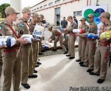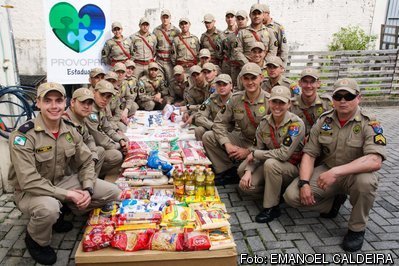 Os alunos do Curso de Formação de Soldados Bombeiros Militares, do 6º Grupamento de Bombeiros de São José dos Pinhais, deram uma verdadeira lição de solidariedade. Na última quarta-feira (31), efetuaram o repasse de 360 quilos de alimentos não perecíveis ao Provopar Estadual.
