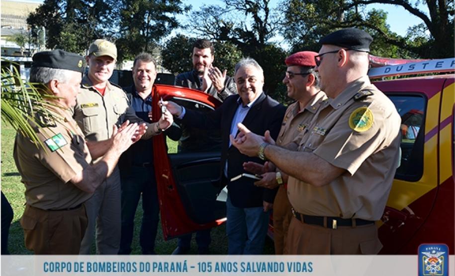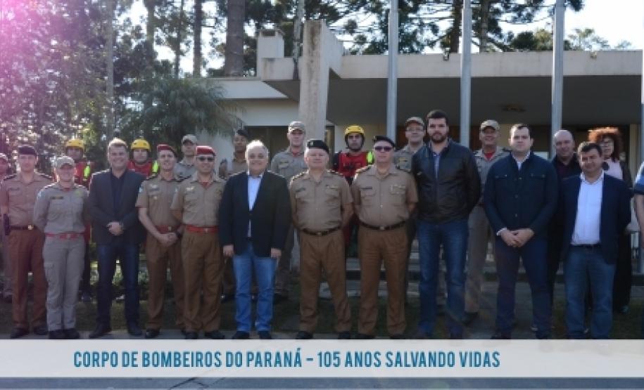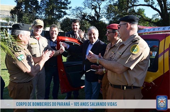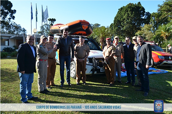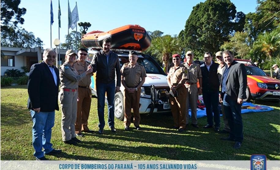 A solenidade de entrega, que aconteceu por volta das 15 horas, no pátio do Gabinete de Governo Municipal, contou com a presença do Deputado Estadual Pedro Lupion, do Presidente da Câmara de Vereadores, Bento Vidal, do Chefe do Estado Maior do Corpo de Bombeiros, Coronel Fabio Mariano de Oliveria, do Comandante Geral da Polícia Militar, Coronel Maurício Tortato, do Secretário Chefe da Casa Civil, Coronel Helio de Oliveira, do Comandante do 2ºSGB/7ºGB de Campo Largo, Tenente Carlos Eduardo Otowicz Klein, do Comandante do 7º Grupamento, Tenente-Coronel Ricardo Silva, além de secretários e vereadores municipais.