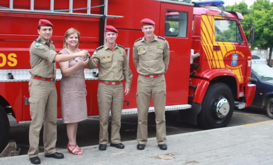 O caminhão veio da Cidade Industrial de Curitiba (CIC), “porque o nosso era muito antigo, com de 30 anos de uso; este novo é de 97, com capacidade de 4 mil litros de água, foi reformado, e agora está utilizado”, disse o Capitão Meira.