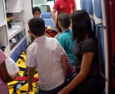 Durante toda a tarde, a guarnição de serviço apresentou as viaturas e equipamentos aos visitantes, explicando tudo sobre as atividades executadas pelo Corpo de Bombeiros do Paraná.
