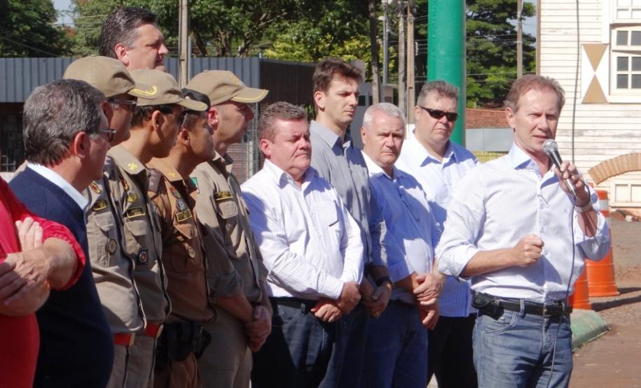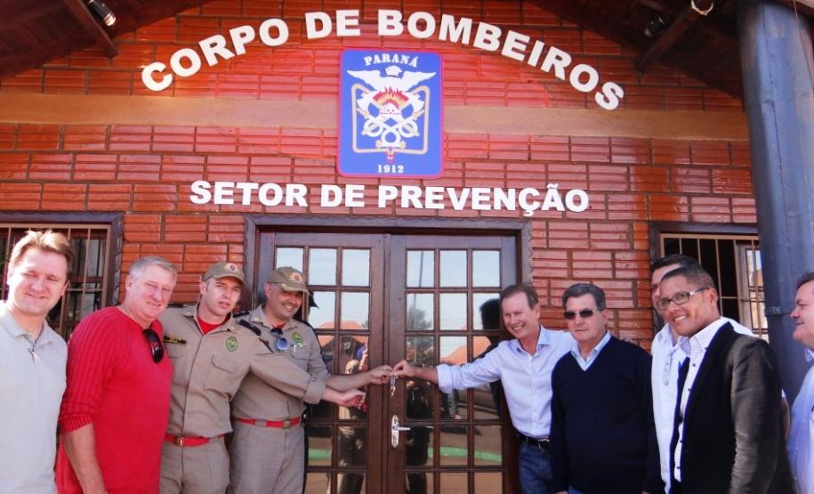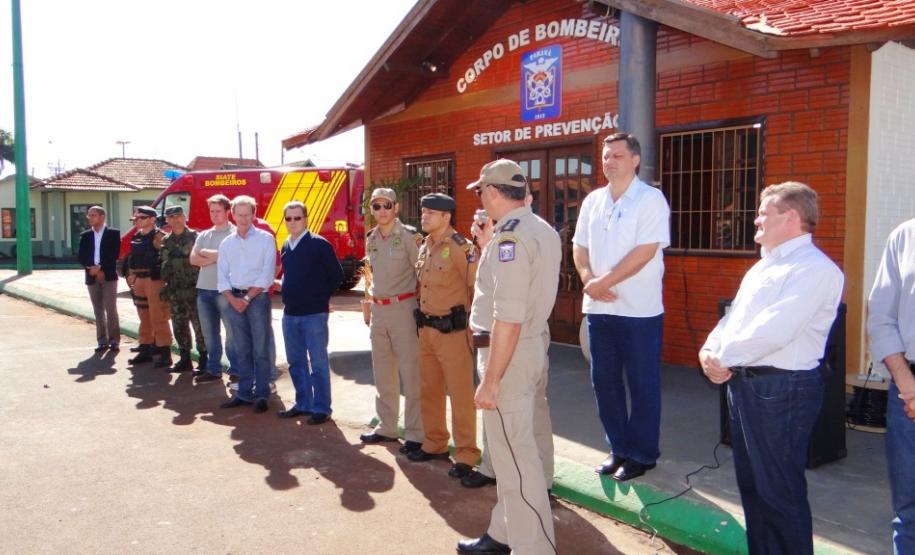 Solenidade realizada na manhã desta segunda-feira, dia 12, marcou a entrega oficial de espaço cedido pela prefeitura que será utilizado pelo Corpo de Bombeiros para o Setor de Prevenção. Estiveram presentes autoridades municipais, caso do prefeito Moacir Froehlich, vice-prefeito Silvestre Cottica, presidente da câmara de vereadores, Ilário Hofstaetter, secretários municipais, representantes da Polícia Rodoviária Federal, do Batalhão de Polícia de Fronteira, do Exército Brasileiro, Corpo de Bombeiros, Polícia Militar, entre outras autoridades.