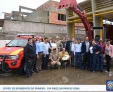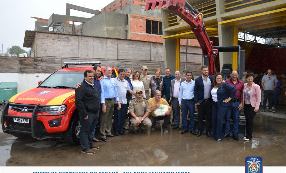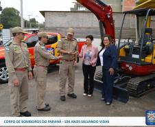 Na manhã de segunda-feira (28), o 6º Grupamento de Bombeiros, em Pinhais, recebeu uma mini retroescavadeira e uma caminhonete operacional, em parceria com o Governo do Estado do Paraná e a Prefeitura Municipal de Pinhais.