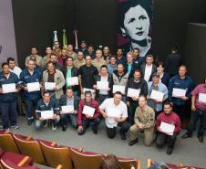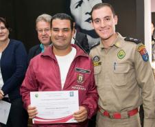 Foi realizada nesta quarta-feira (04), no Teatro Municipal Heloína Ribeiro de Souza, no município de Piraquara, a Formatura do Curso de Capacitação em Atendimento Pré-Hospitalar, oferecido por meio de um convênio do FUNREBOM pelo Corpo de Bombeiros da Polícia Militar em parceria com a Prefeitura de Piraquara, para profissionais da saúde que agora vão atuar também no atendimento básico a população em situações que envolvem urgência e emergência.