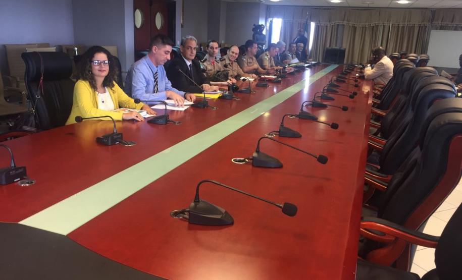 Uma delegação de cinco oficias do Corpo de Bombeiros do Paraná, composta pelo Tenente-Coronel Samuel Prestes, Tenente-Coronel Paulo Henrique de Souza, Major Fernando Ferreira Machado, Major Dorico Gabriel Borba e Major Leonardo Mendes dos Santos, em conjunto com uma delegação de quatro componentes da Agência Brasileira de Cooperação representada pelo Sr. Paulo Barbosa Lima, Sr. Julio Guaraciaba Pohl, Sra. Paula Costa da Silveira e pelo tradutor oficial, Sr. Marcos Targino Gambini, além do Sr. Roney Rios do Ministério da Integração Nacional, iniciaram na tarde do último domingo (11), a missão de Fortalecimento Institucional e Operacional do Sistema Nacional de Proteção e Defesa Civil da Guiné Equatorial.
