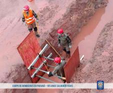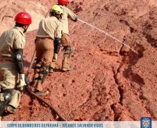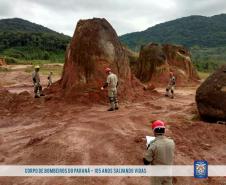 Entre os dias 20 e 29 de junho, o Corpo de Bombeiros do Paraná, por meio do 8º Grupamento de Bombeiros, unidade do litoral do estado, realizou treinamento de técnicas para o atendimento seguro a ocorrências de deslizamento. Numa primeira etapa, cada aluno recebeu um dia de instruções teóricas, no auditório do quartel do Corpo de Bombeiros em Paranaguá. Na sequência, todos desempenharam 8 horas de atividades práticas, em espaço cedido pela Saibrera Moro, no município de Guaratuba, na divisa do estado com Santa Catarina.