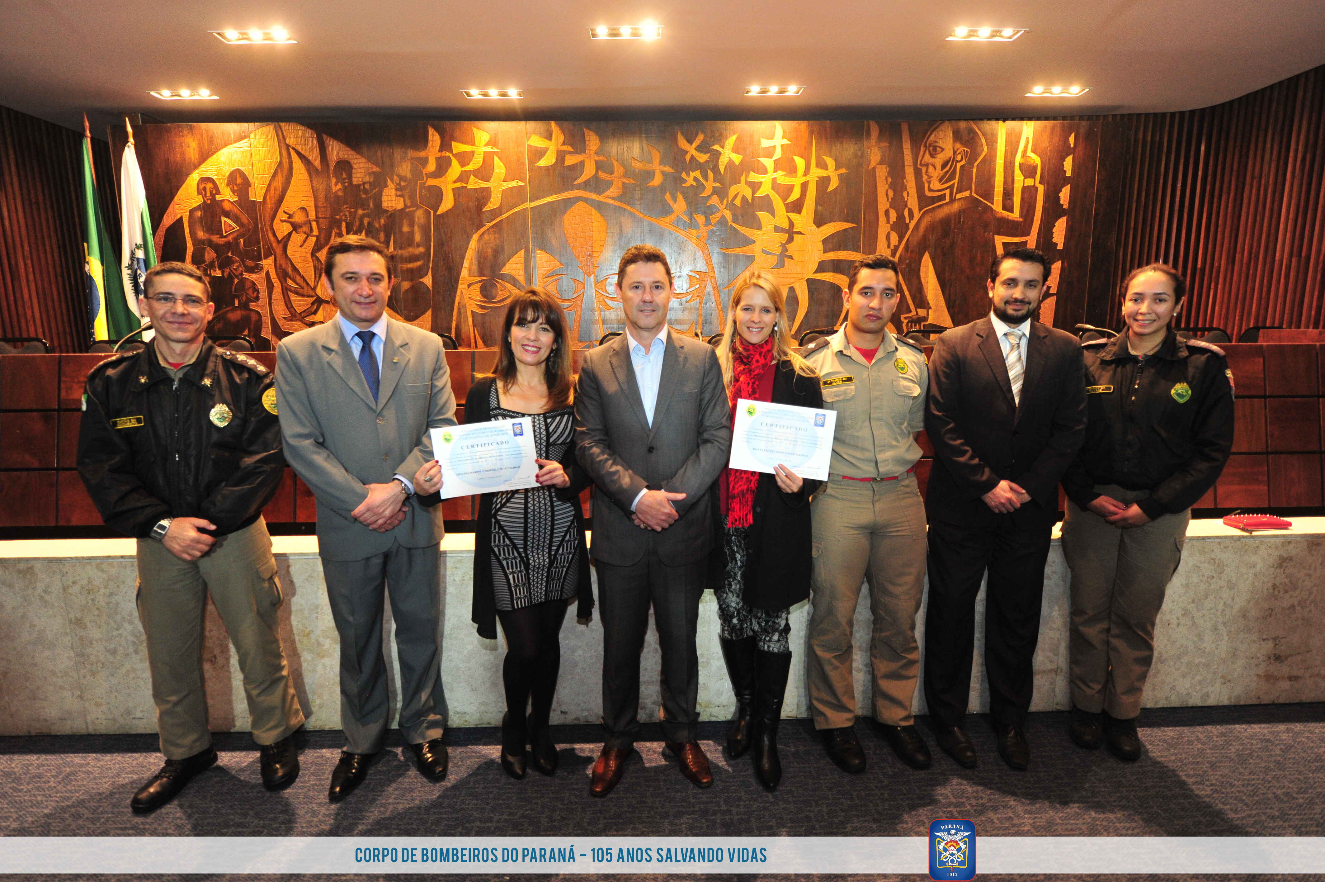 Nos dias 3 e 11 de agosto de 2017, o Corpo de Bombeiros do Estado do Paraná, por intermédio do 1º Subgrupamento de bombeiros do 7º Grupamento de Bombeiros, realizou o Treinamento de Brigada de Incêndio – Nível Intermediário com duração de 8h para os servidores da Assembleia Legislativa do Paraná e na data de hoje concluiu o treinamento com a entrega dos certificados de brigada para os mais de 100 participantes.