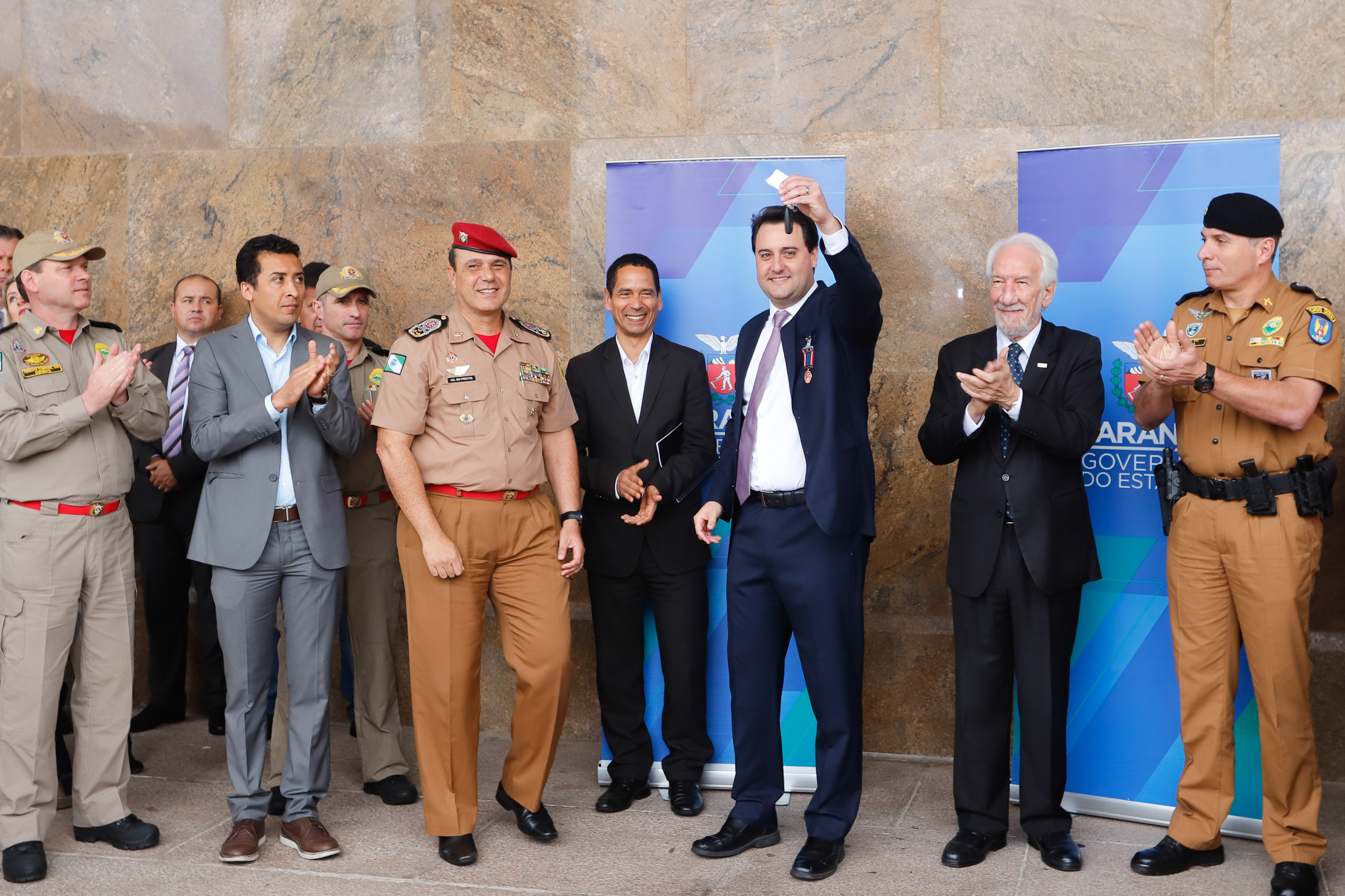 MEDALHA - O governador também foi homenageado pelo Corpo de Bombeiros do Paraná com a medalha Presidente Carlos Cavalcanti de Albuquerque, maior honraria da corporação. Elas são destinadas a personalidades civis e militares que ajudaram a fortalecer a instituição.