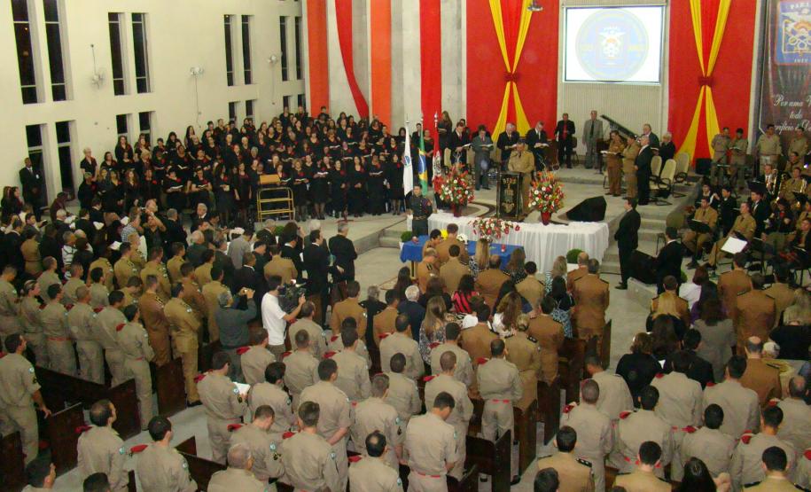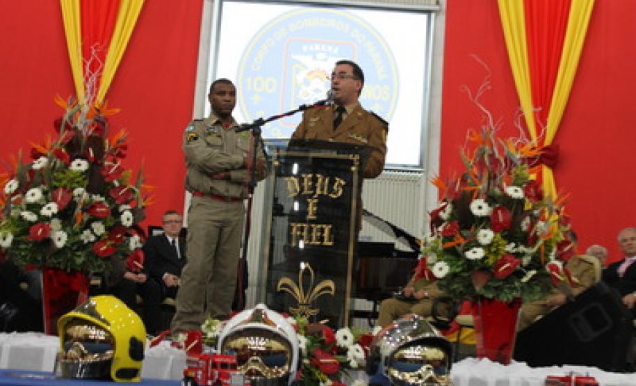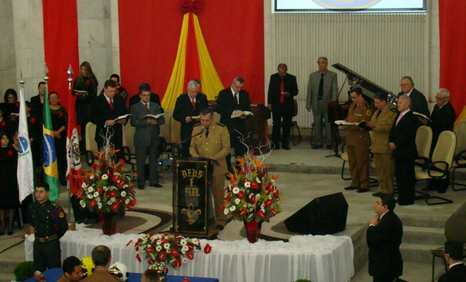 O culto iniciou-se com o cântico do Hino Nacional e em seguida foi realizada a leitura da Bíblia, acompanhada pela equipe de louvor, composta por Militares do 6º Grupamento de Bombeiros. Em pronunciamento, o Comandante da Corporação, Coronel Pombo, agradeceu a presença de todos e enalteceu a proteção divina que os homens do fogo recebem durante as diversas ocorrências que participam: "100 anos sob a proteção de Deus e também servindo de instrumento para salvar vidas. Hoje, estamos agradecendo por todas as bençãos recebidas durante a existência da nossa corporação. O Corpo de Bombeiros do Paraná é reconhecido pela excelência de seu trabalho, graças ao empenho de cada integrante. Reconhecemos que só fazemos o que é possível, pois o impossível pedimos ao nosso comandante maior, que tem nos ajudado, o Senhor nosso Deus, é por isso somos vitoriosos", relata o Comandante, que conclui mencionando o Capítulo 43 do livro de Isaías: "Quando passares pelas águas, estarei contigo, e quando pelos rios, eles não te submergirão, quando passares pelo fogo, não te queimarás, nem a chama arderá em ti".