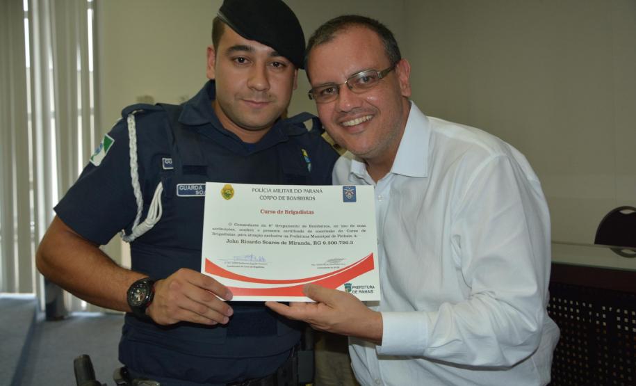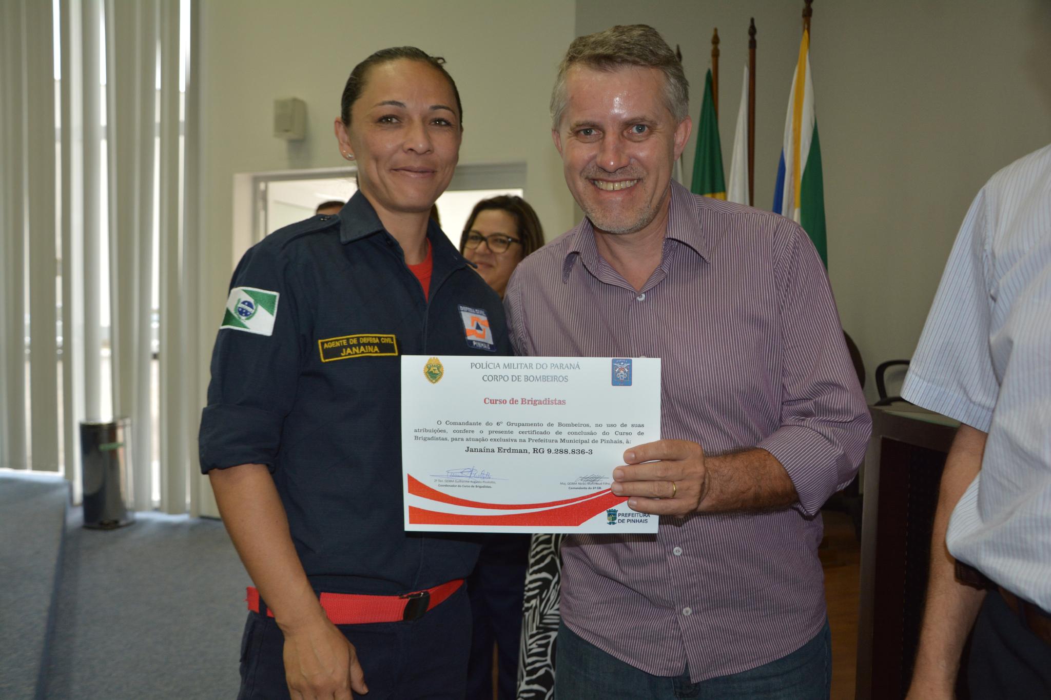 O 3º SGB do 6º realizou na manhã de sexta-feira (25) a cerimônia de entrega dos certificados aos servidores da Prefeitura Municipal de Pinhais, que participaram do primeiro Curso de Brigadista, ministrado pelo Corpo de Bombeiros de Pinhais. A iniciativa foi promovida no Auditório da Secretaria Municipal de Educação, localizado no bairro Weissópolis.