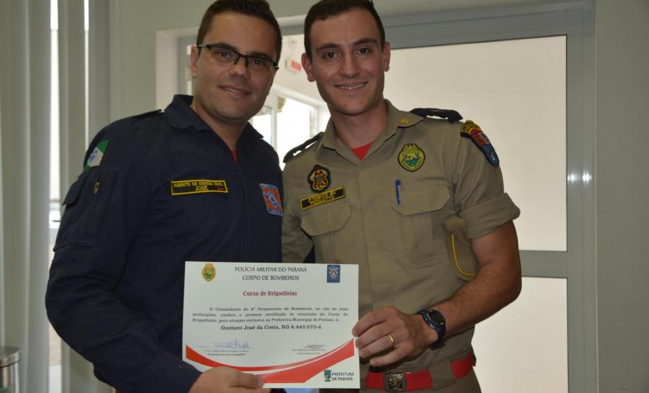 Estiveram presentes na cerimônia de entrega de certificados o Respondente pelo Comando do 3º Subgrupamento de Bombeiros de Pinhais, 2º Ten. QOBM Guilherme Augusto Picolotto; o presidente da Câmara Municipal de Pinhais, Gilberto Hartkopft; a vereadora Cecília Padovan; o secretário de Governo, Lukala Nóbrega; a secretária de Administração, Rosa Maria de Jesus Colombo; a secretária de Educação, Andrea Franceschini; o diretor do Departamento de Segurança Pública e Patrimonial, José Arildo de Oliveira; Departamento de Gestão Pública Coronel PM RR Irineu Ozires, a Diretora da Divisão de Administração da Secretaria de Governo, Andrea Mendes Motelevicz e a superintendente da Guarda Municipal de Pinhais, Major PM RR Iracema Maschio.
