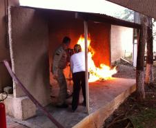 Durante o treinamento prático de combate a princípios de incêndio foi utilizado um novo material cedido ao 1º Grupamento de Bombeiros pela Ultragaz, o qual possibilita melhor entendimento sobre o comportamento do GLP, bem como a visualização simulada de explosão por vazamento de gás.