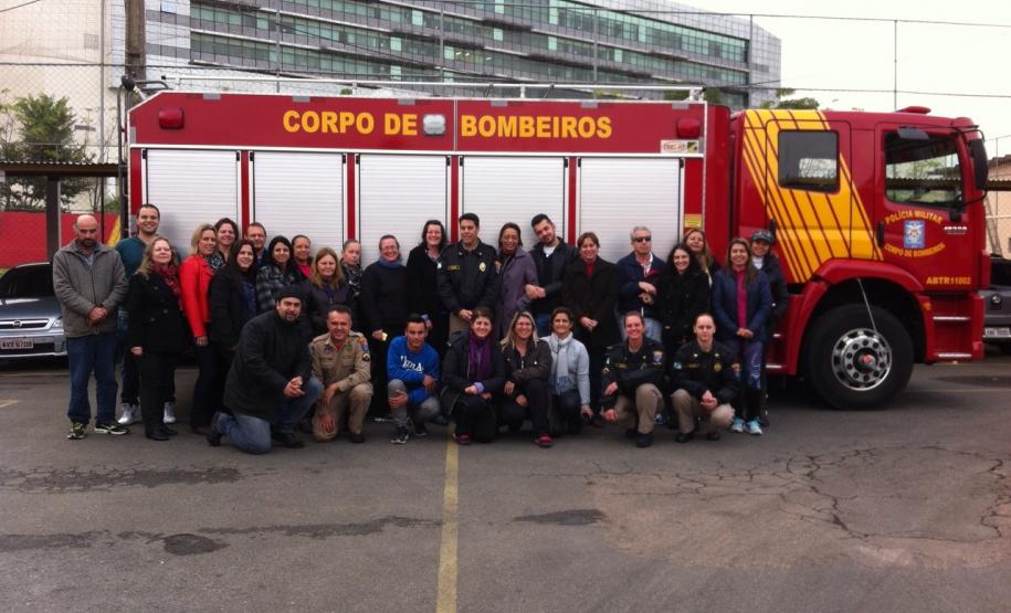 Após terem concluído a fase EAD de 60 h/a, os servidores receberam capacitação prática nas dependências do 1º Grupamento de Bombeiros, para prevenção e combate a princípios de incêndio, primeiros socorros, e esclarecimento de dúvidas a respeito do plano de abandono e EAD.