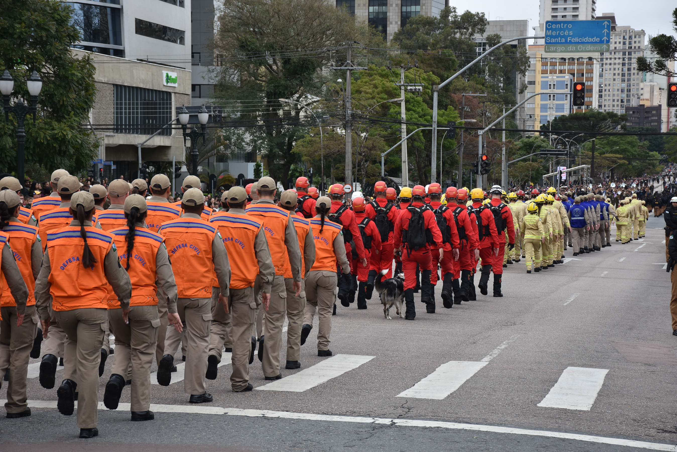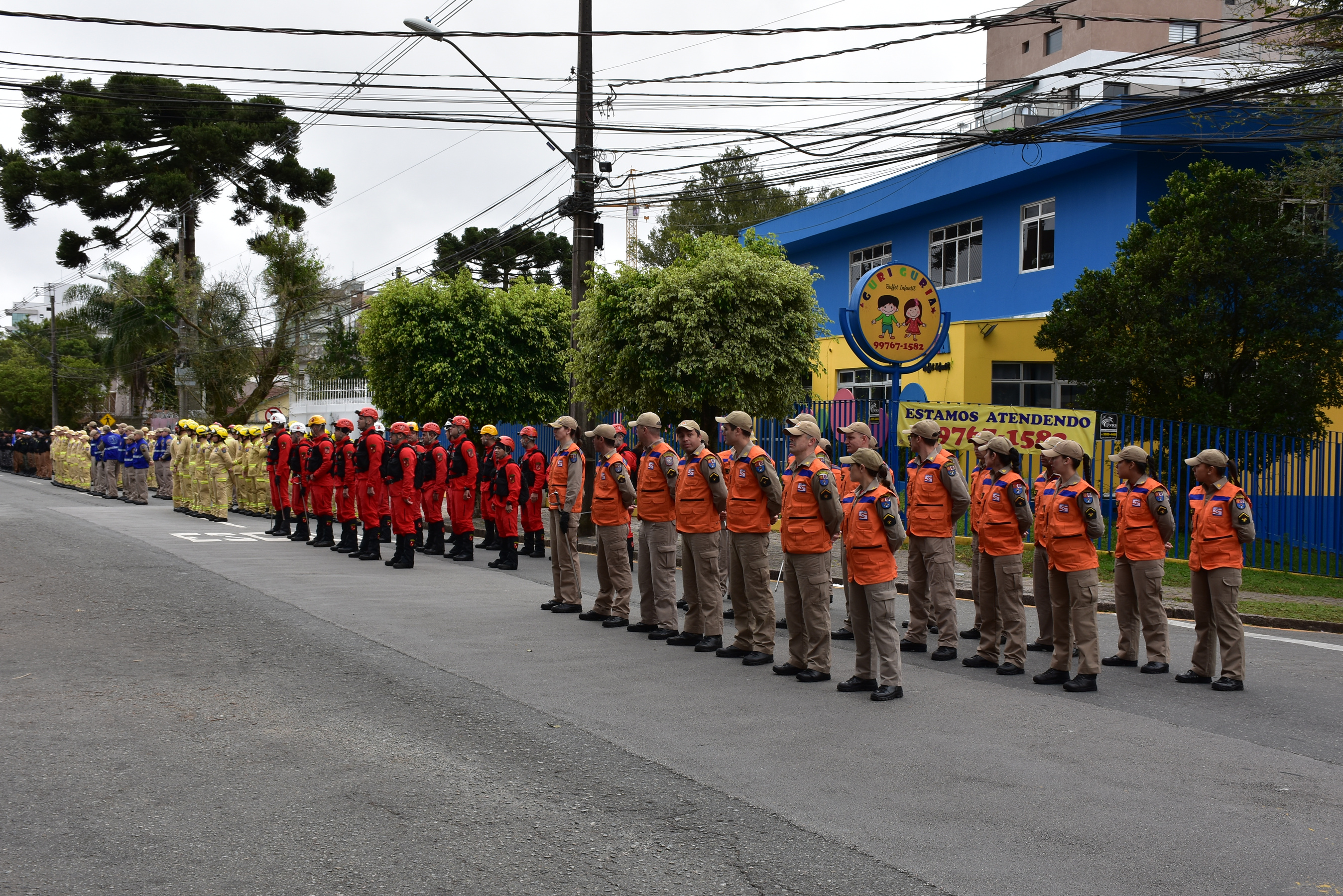 O primeiro pelotão a desfilar foi composto por militares do Comando-Geral. Todos utilizando o novo fardamento, que também é um equipamento de proteção de uso diário. Logo em seguida, veio o pelotão composto por militares do 1º Grupamento de Bombeiros, criado em 1912, em Curitiba. Simbolizando a principal atividade de atendimento da Corporação, o desfile ocorreu com uniforme dos Socorristas.