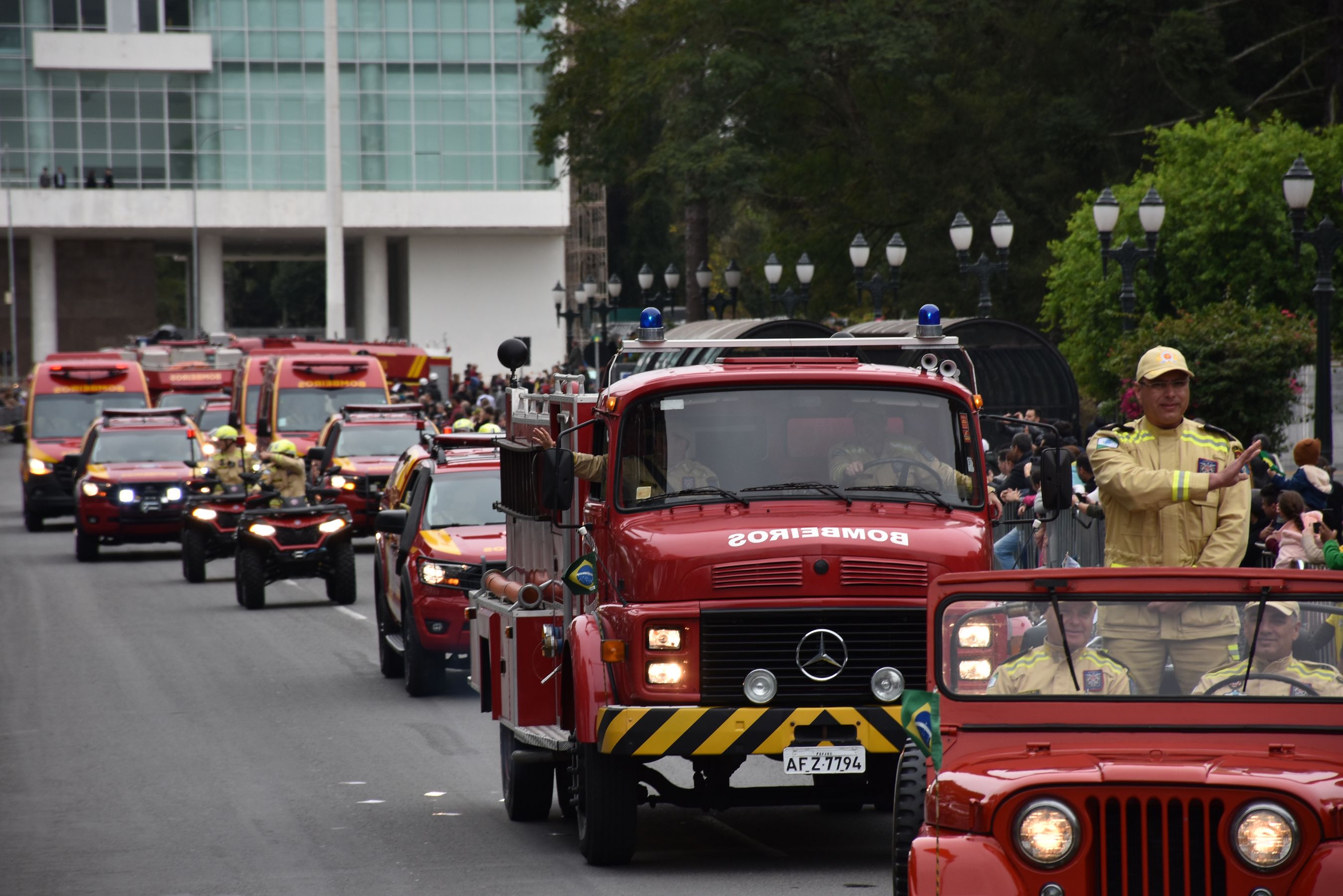 Como forma de marcar o momento histórico, o CBMPR levou para a cerimônia 159 profissionais, divididos em cinco pelotões, além de 21 veículos. Eles representaram os 3.301 bombeiros militares do Estado. O desfile motorizado incluiu modelos antigos, que hoje integram o Museu do Bombeiro, no Comando-Geral, além de peças modernas, atualmente utilizadas para diversos tipos de atendimento de emergência.