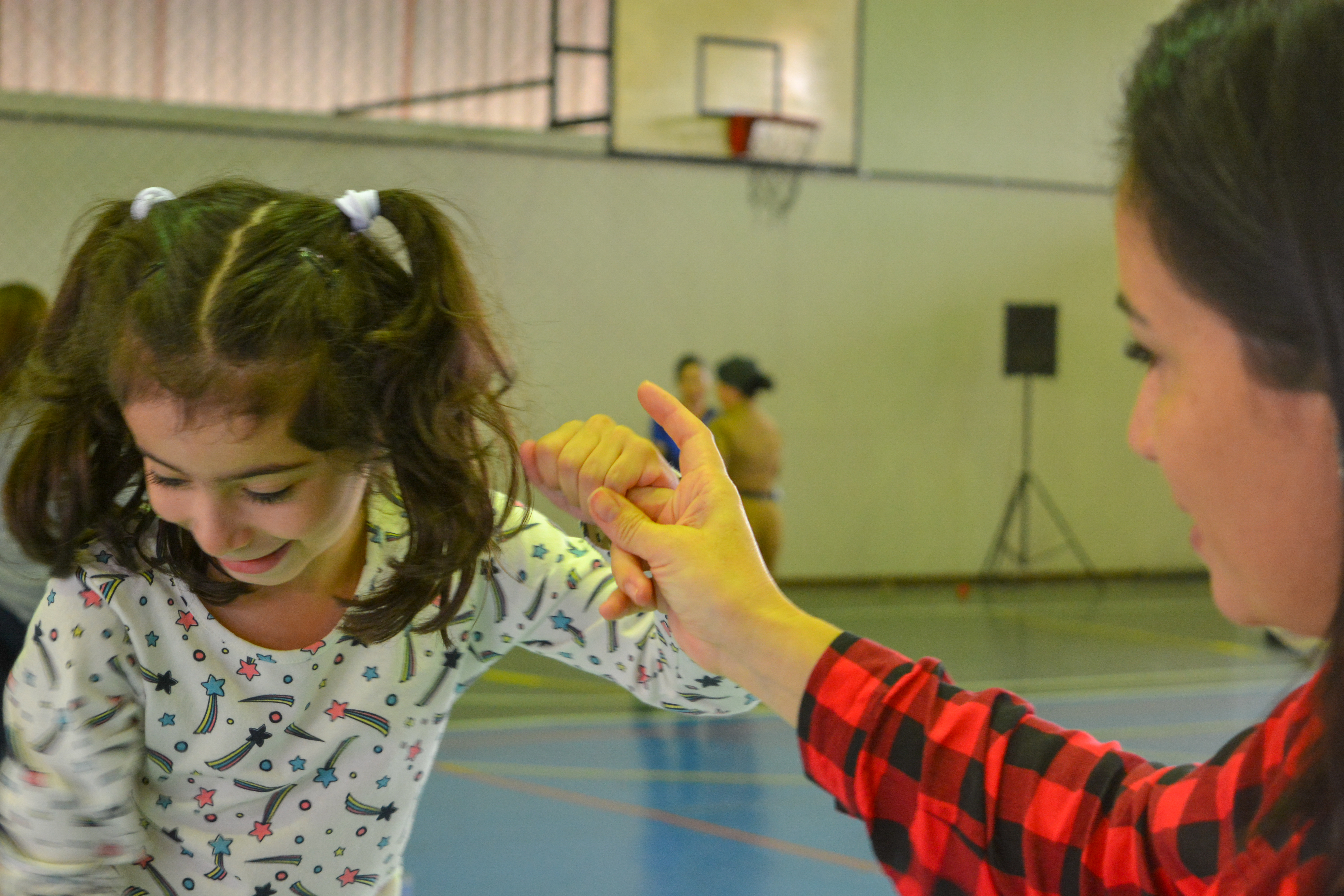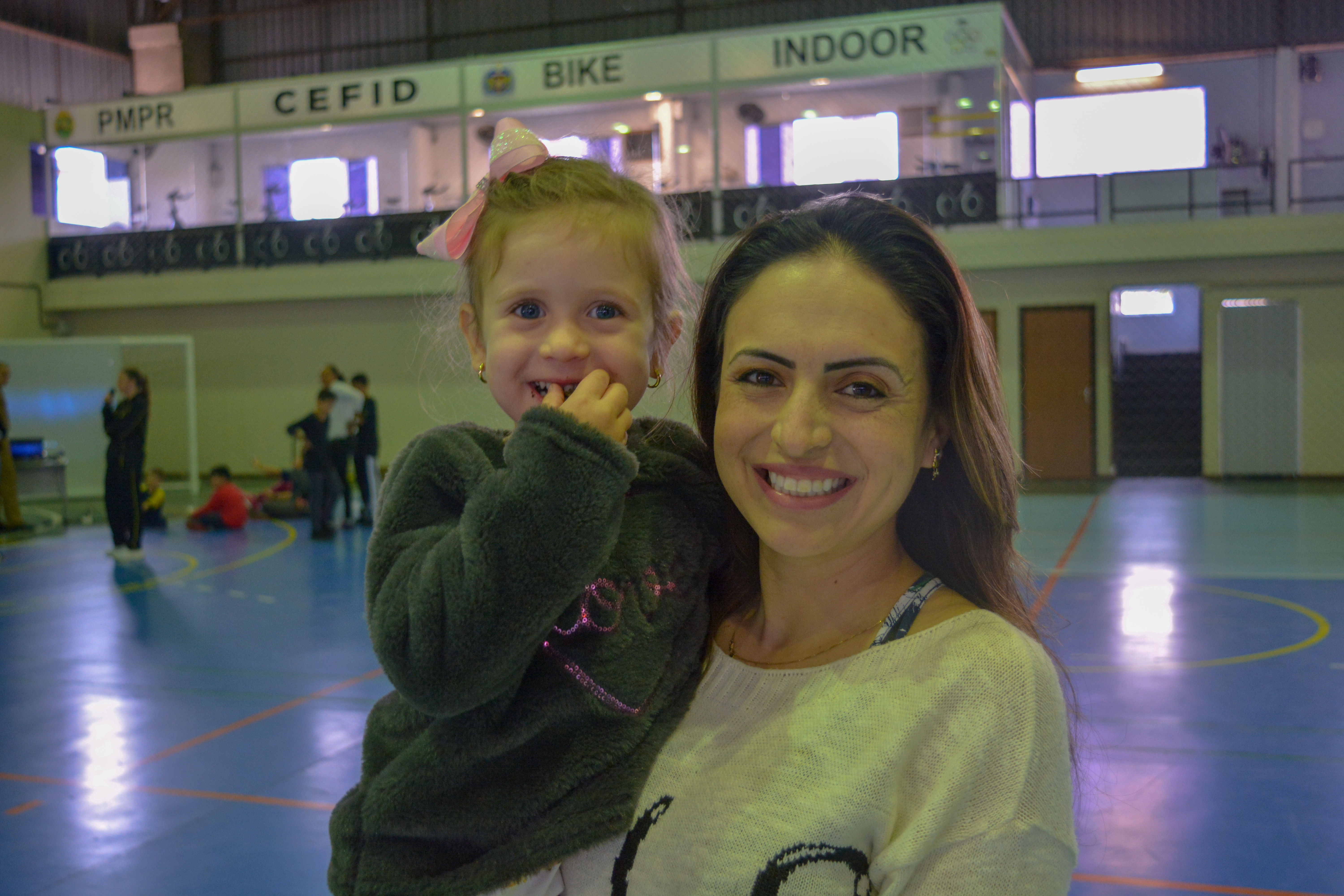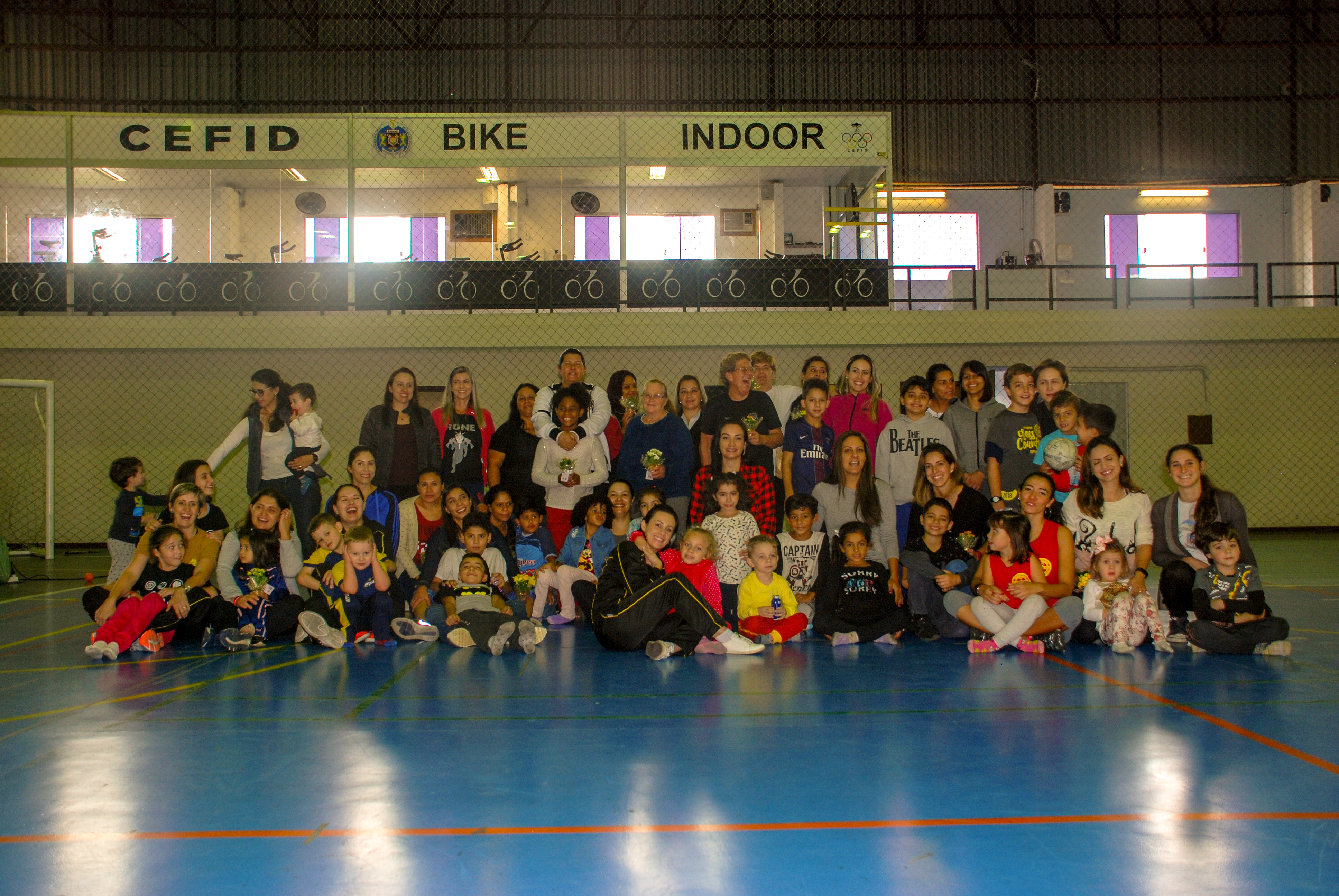 O Centro de Educação Física e Desportos (CEFID) também auxiliou nas comemorações com atividades físicas para as mães e filhos. “Muitas mães já vem treinar aqui conosco, então colocar as crianças já cedo na atividade, mesmo sendo lúdica, com músicas infantis, estimula a gostarem de exercício físico”, disse professora de aula laboral e localizada do CEFID, soldado Geslaine Ketlin Couto da Silva.