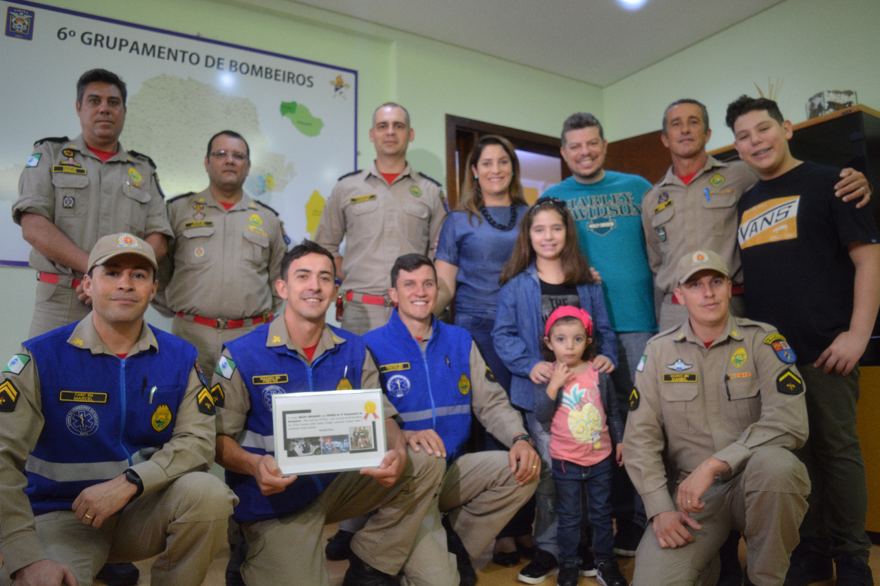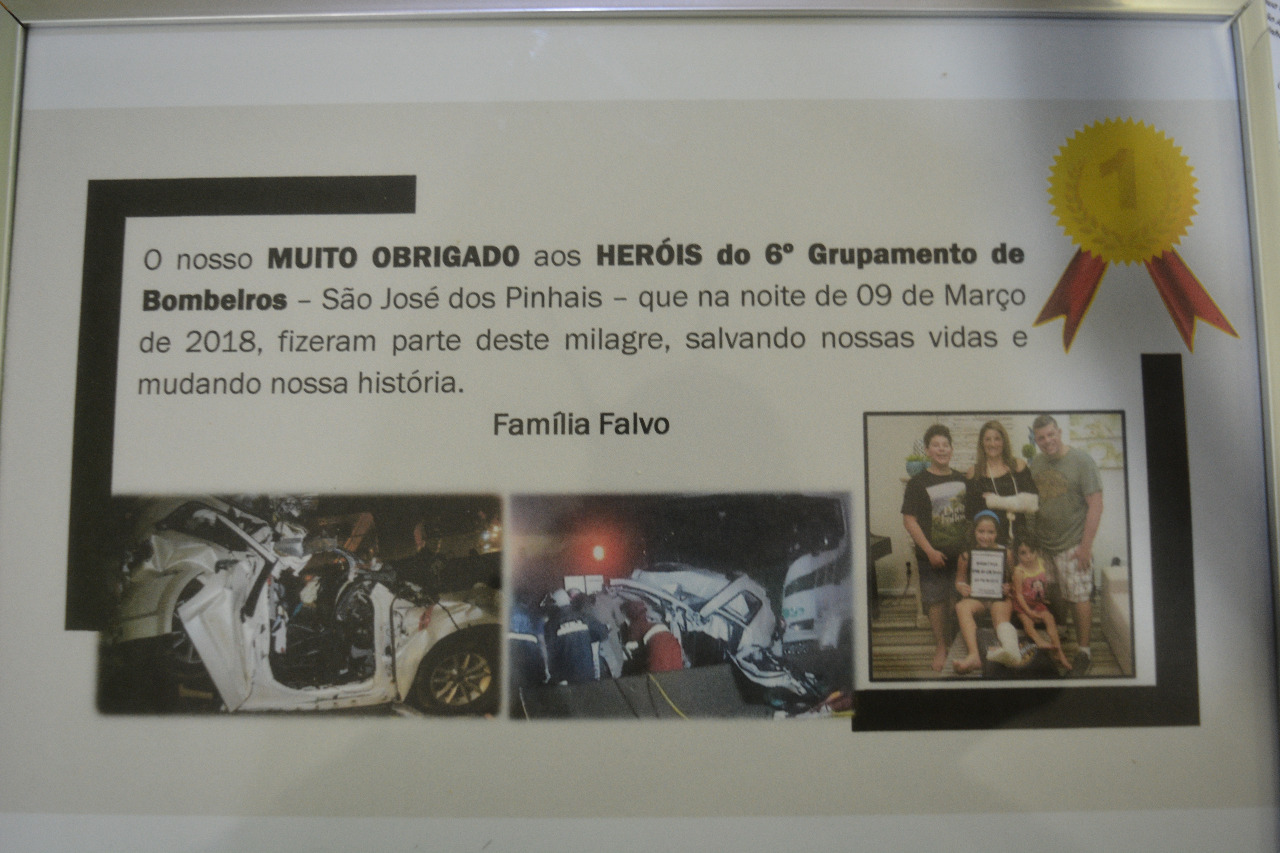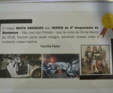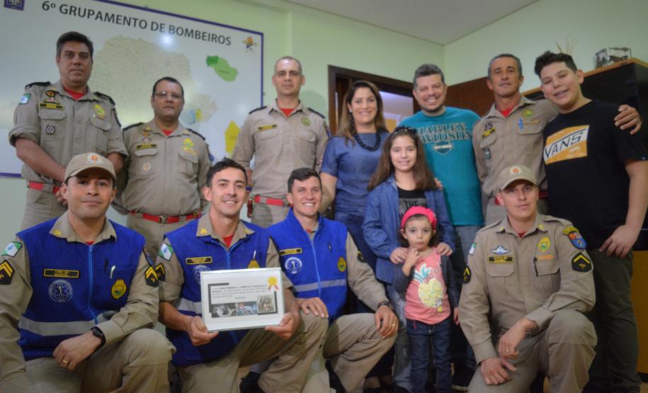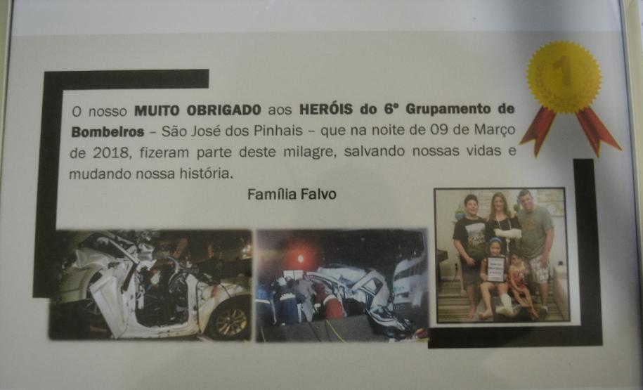 Na manhã de segunda-feira (02) o quartel do Afonso Pena recebeu a grata visita de uma família socorrida pela guarnição de São José dos Pinhais, na noite do dia 09 de março.