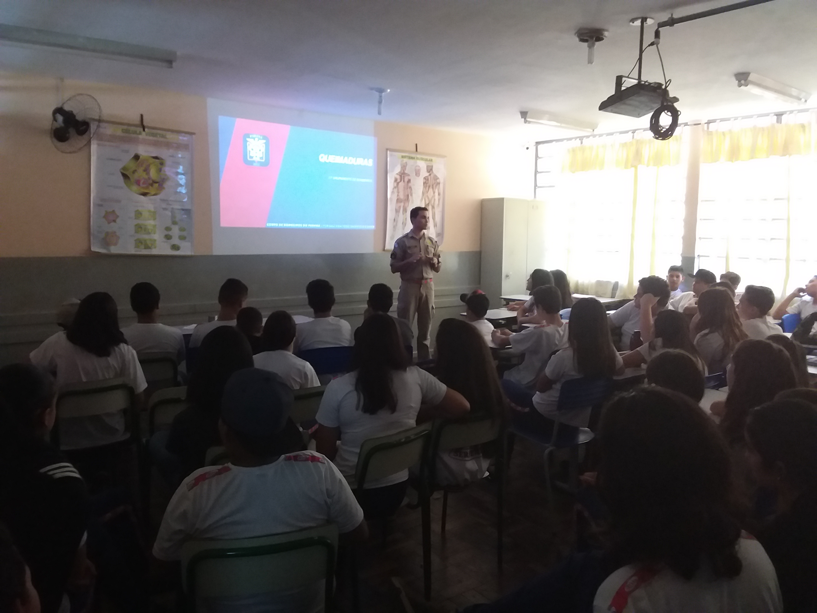 Cerca de 170 alunos dos 8º anos de Colégios da Rede Estadual de Ensino participaram de palestra sobre queimaduras ministrada pelo 11º Grupamento de Bombeiros.
