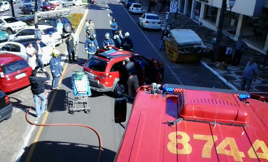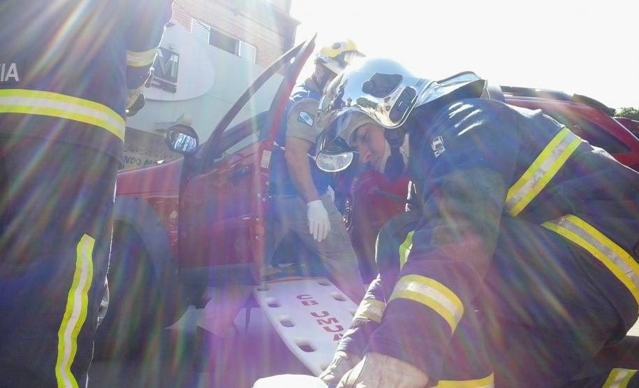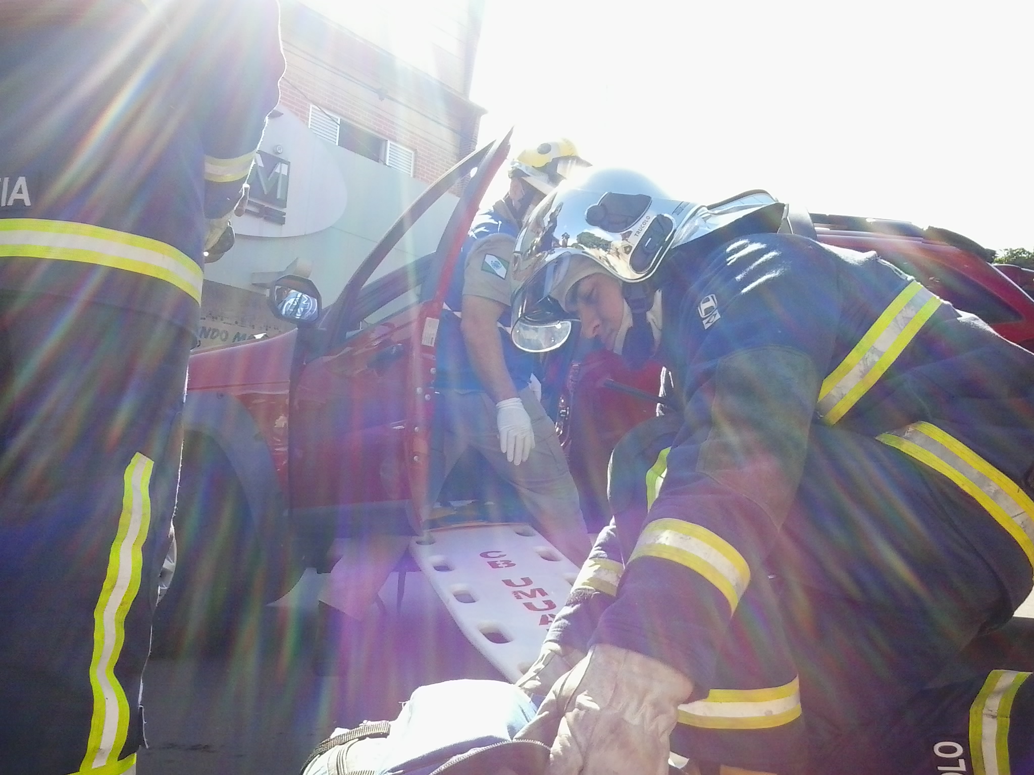Dando continuidade as comemorações, às 11 horas foi realizada uma simulação de atendimento a acidente de trânsito com vítima, na Avenida Paraná, próximo praça onde os equipamentos estavam sendo exibidos.