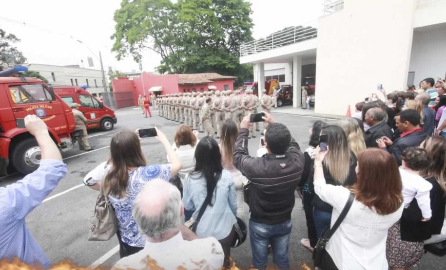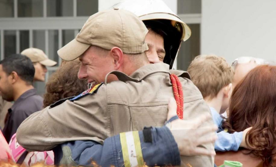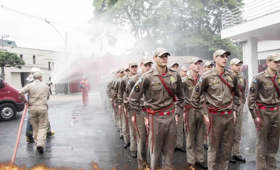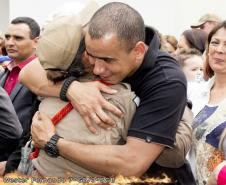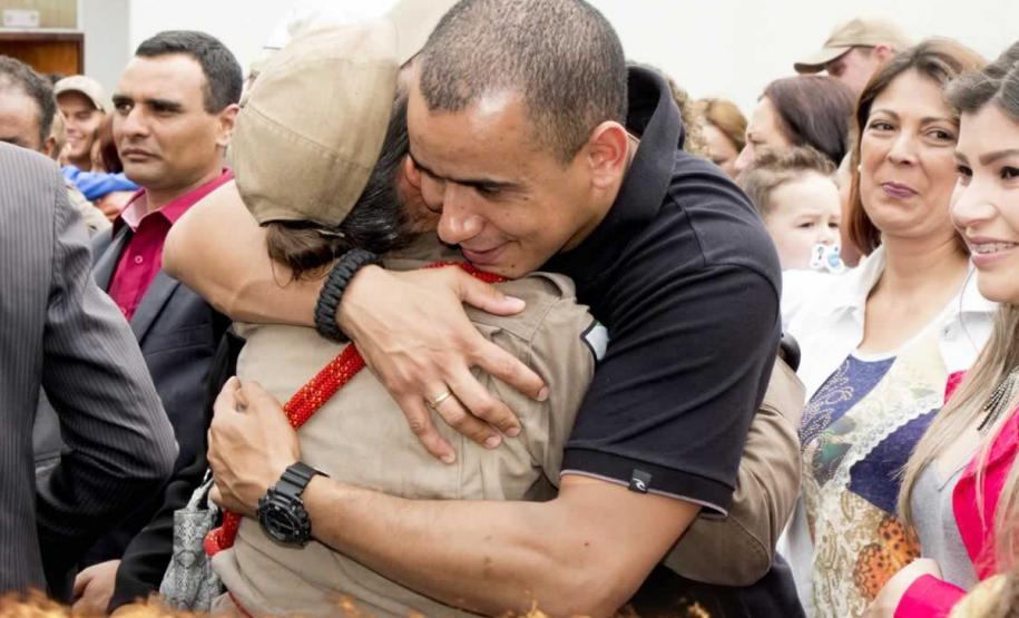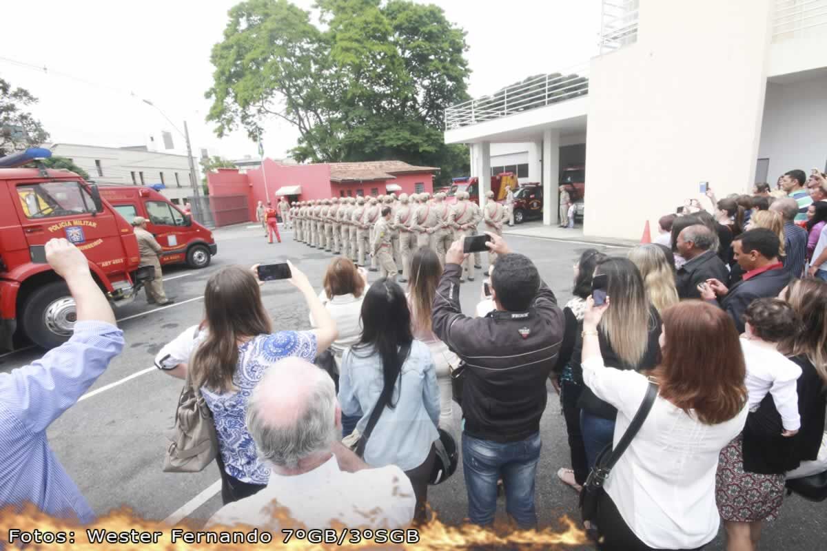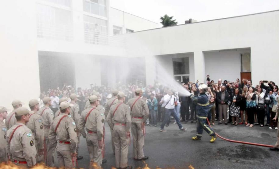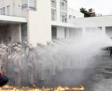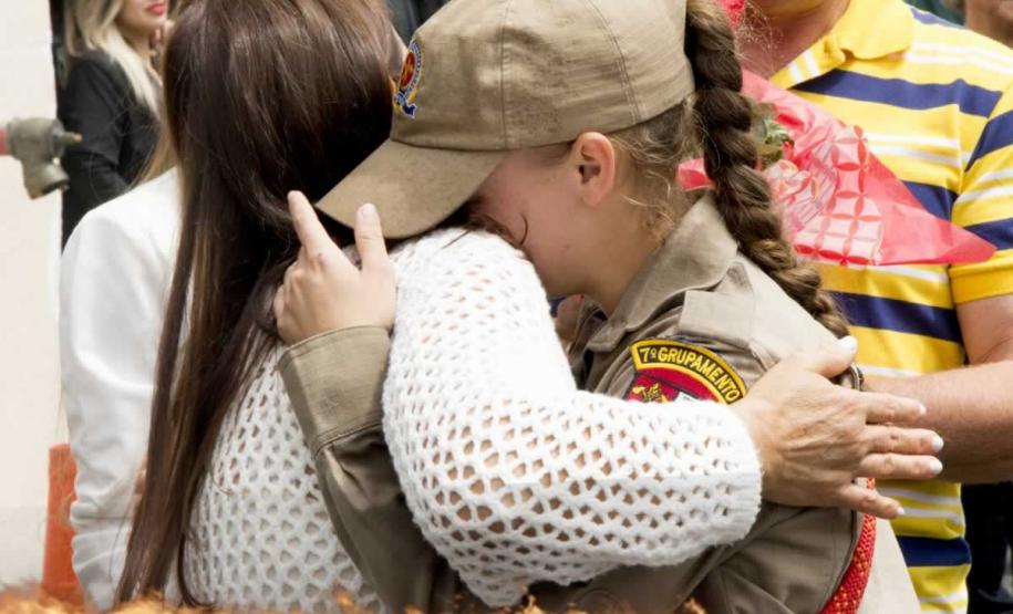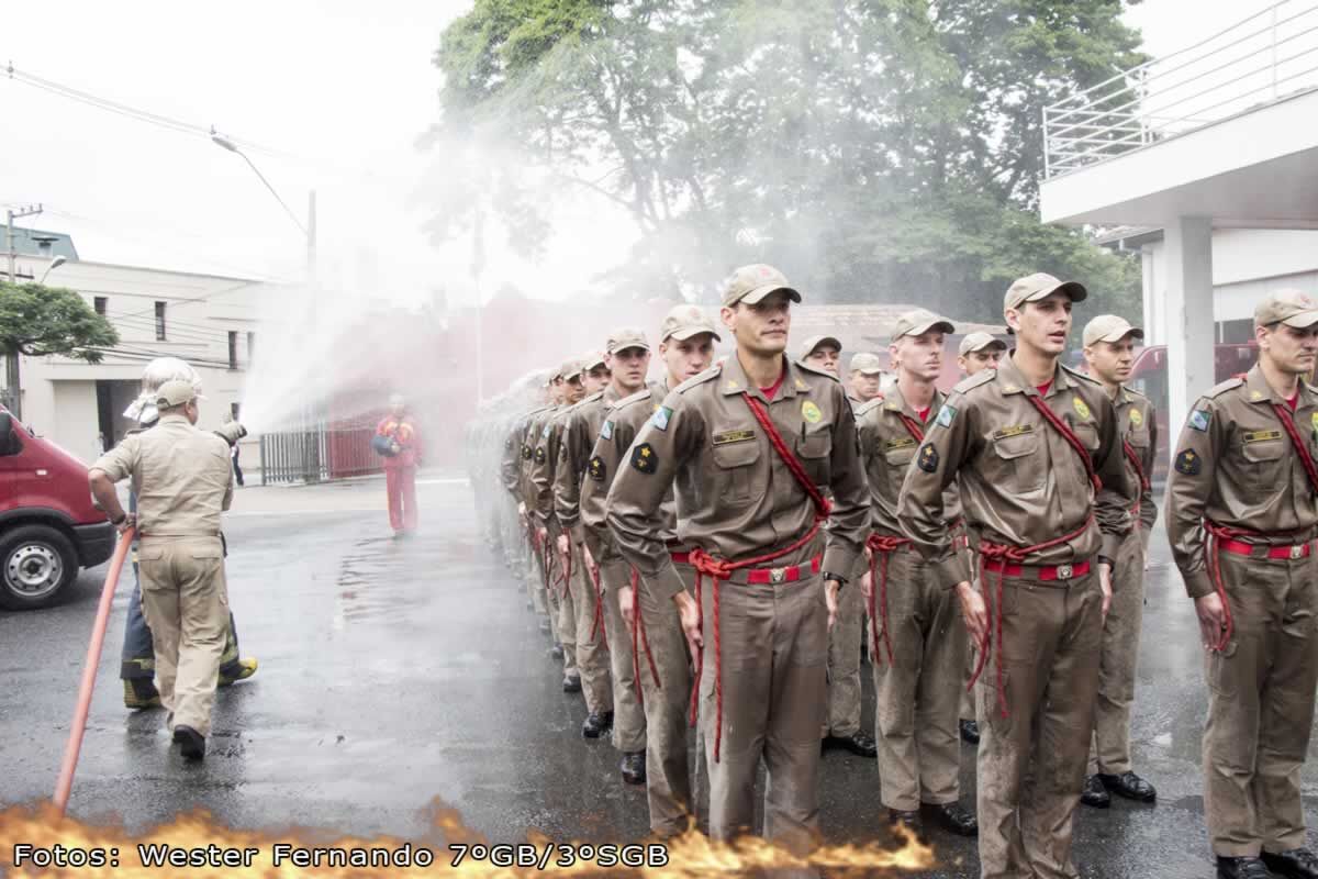 Após a recepção e palavras do Comandante da Unidade, os alunos foram surpreendidos pela presença dos familiares enquanto passavam pelo tradicional banho de mangueira, conhecido no meio militar como “batismo”.