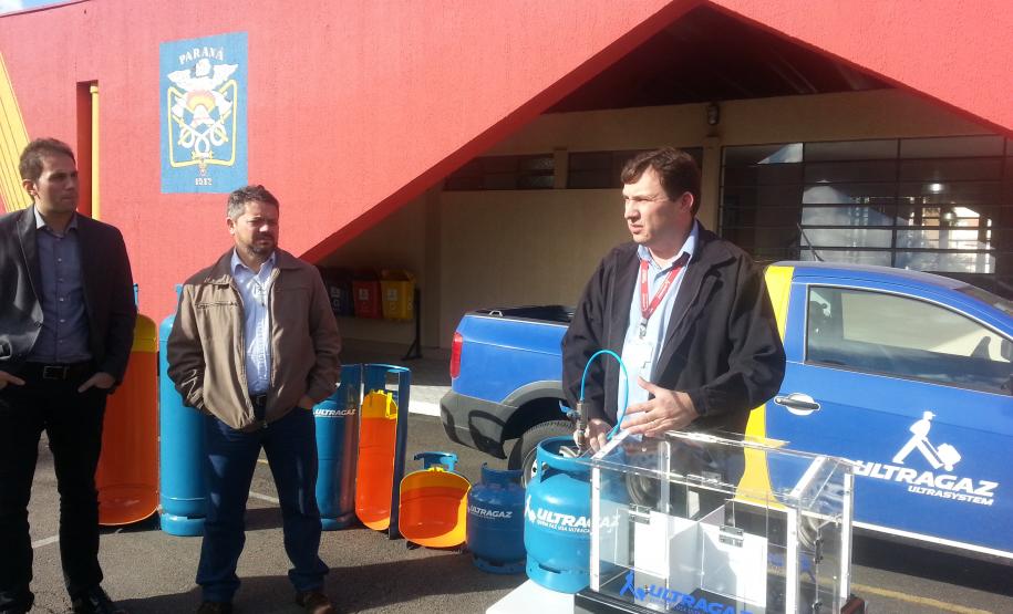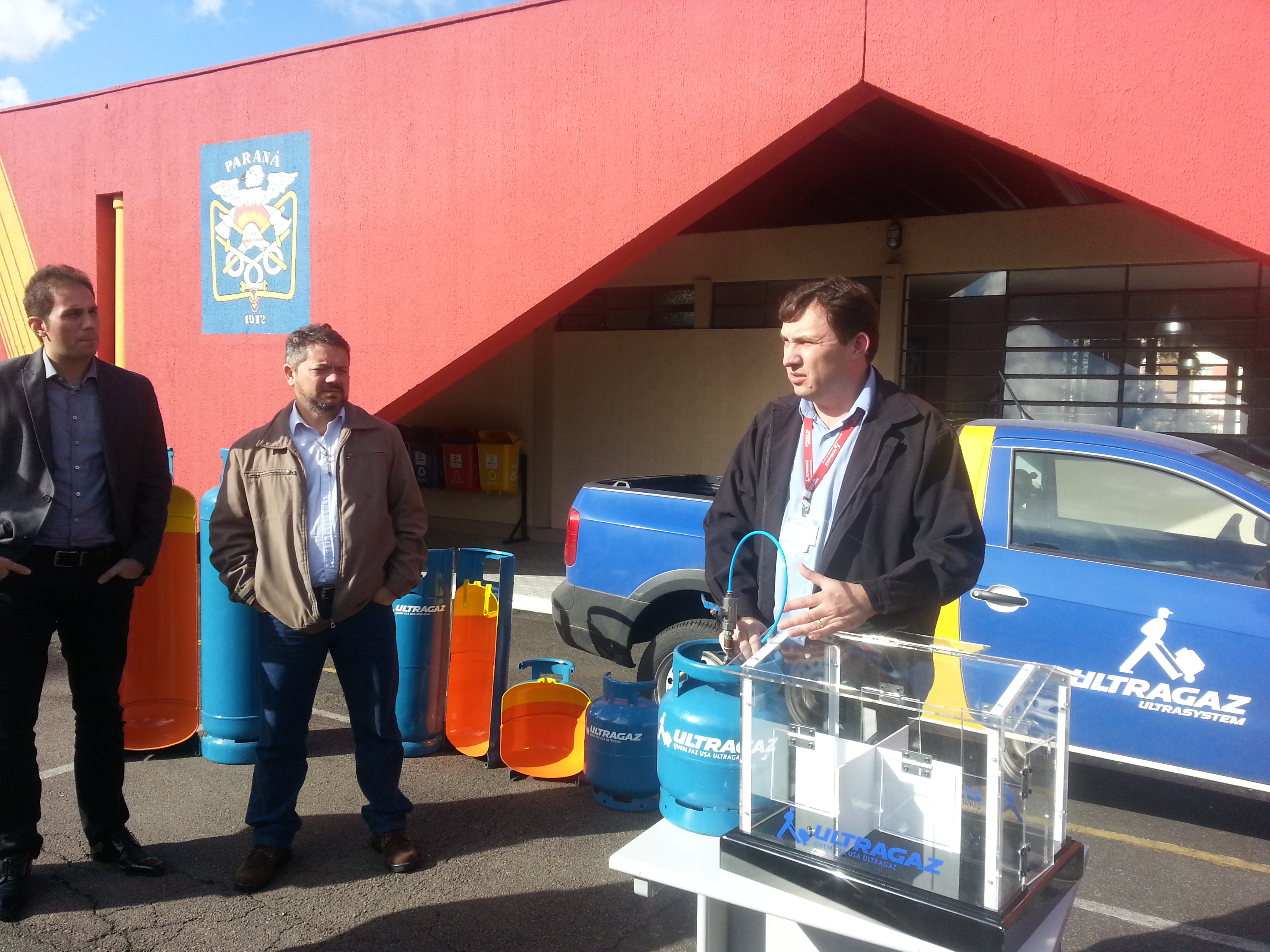 A parceria realizada entre a 1ª CORPDEC – Coordenadoria Estadual de Proteção e Defesa Civil e a Ultragaz resultou na doação de um kit de treinamento que possibilita maior entendimento acerca do manuseio e armazenamento de botijões, sobre o funcionamento e segurança dos vasilhames, e cuidados relacionados a utilização do GLP. O kit é composto por vasilhames de P13, P20 e P45 cortados, P5 e casinha de acrílico para simulação de explosão por vazamento de GLP. Este kit será utilizado em treinamentos empregados pelo Corpo de Bombeiros da Polícia Militar do Paraná, sendo este o primeiro respondedor quando corre um sinistro envolvendo este tipo de material.