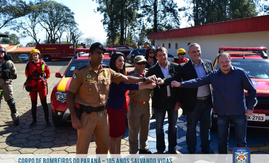 Na tarde desta quinta-feira (27) o 9º Grupamento de Bombeiros fez a entrega oficial das 6 viaturas advindas do Governo Estadual, sendo elas 4 Dusters, veículos utilizados no serviço de vistoria com relação à Prevenção Contra Incêndio e Pânico, e 2 Frontiers, destinadas às ações de Defesa Civil.