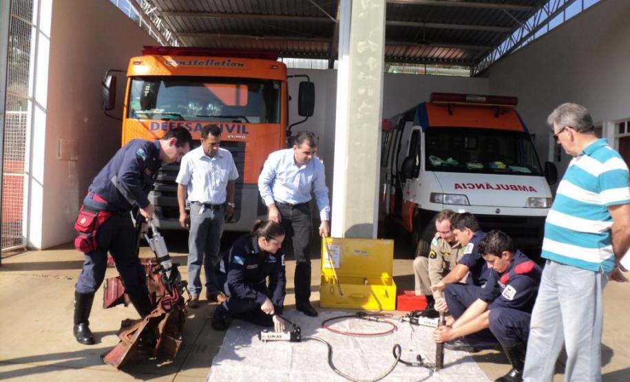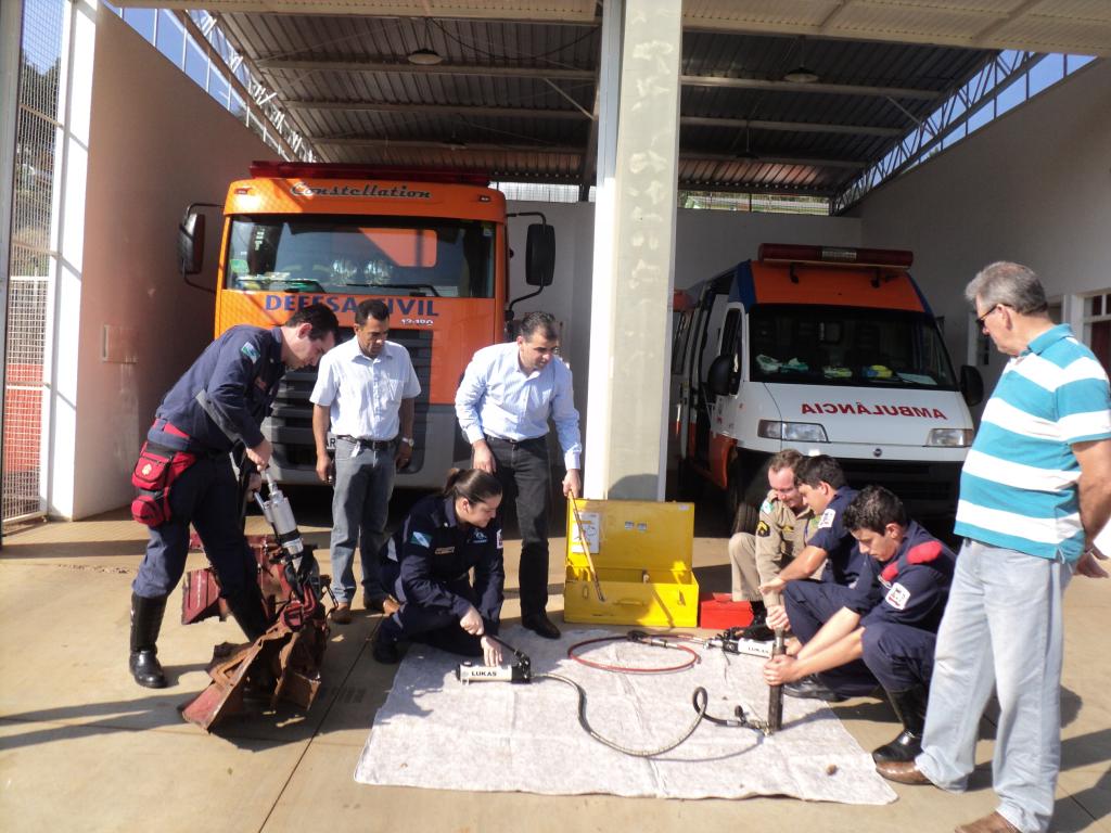 O conjunto desencarcerador, foi emprestado pelo Corpo de Bombeiros do Paraná e será utilizado nas atividades de resgate de vítimas de acidente de trânsito no município de São Jorge d´Oeste. Durante a entrega foi realizada uma demonstração técnica pelos Agentes da Defesa Civil.