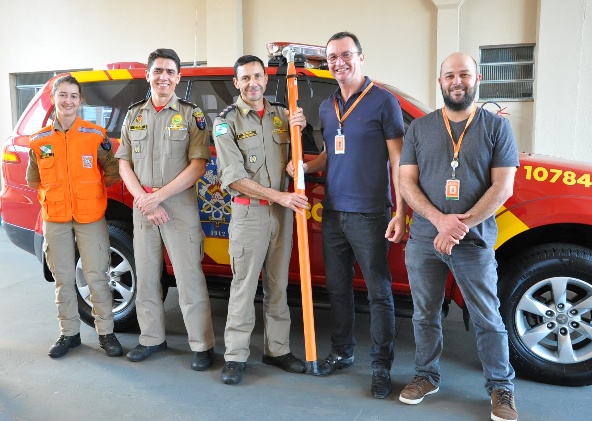 A 11ª Coordenadoria Regional de Proteção de Defesa Civil, que abrange 22 municípios e tem como Coordenador Regional o Comandante do 11º Grupamento de Bombeiros, Major André Lopes, recebeu da Copel, representada pelo Gerente da Agência de Apucarana, Gilberto Stefani, na tarde desta segunda-feira (9 de setembro), uma vara telescópica que será utilizada na execução de trabalhos de manobra, manuseio, fixação e retirada de dispositivos em estruturas.