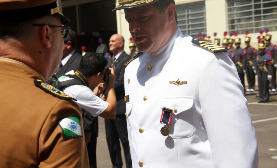 Outro homenageado foi o capitão-de-mar-e-guerra Renato Pericin Rodrigues da Silva, Comandante da Capitania dos Portos do Paraná, exaltou a competência do Corpo de Bombeiros e a parceria nos trabalhos anuais da Operação Verão. “O Corpo de Bombeiros, principalmente na área litorânea, tem uma atuação muito importante junto a segurança dos banhistas, na segurança da navegação, então contribui bastante para a autoridade marítima e com a capitania dos portos. É a força do estado que mais tem uma missão semelhante a da Marinha, por isso esta trabalhando no seio da corporação, então é muito bom em a relação da Marinha do Brasil quanto ao Corpo de Bombeiros”, explicou.