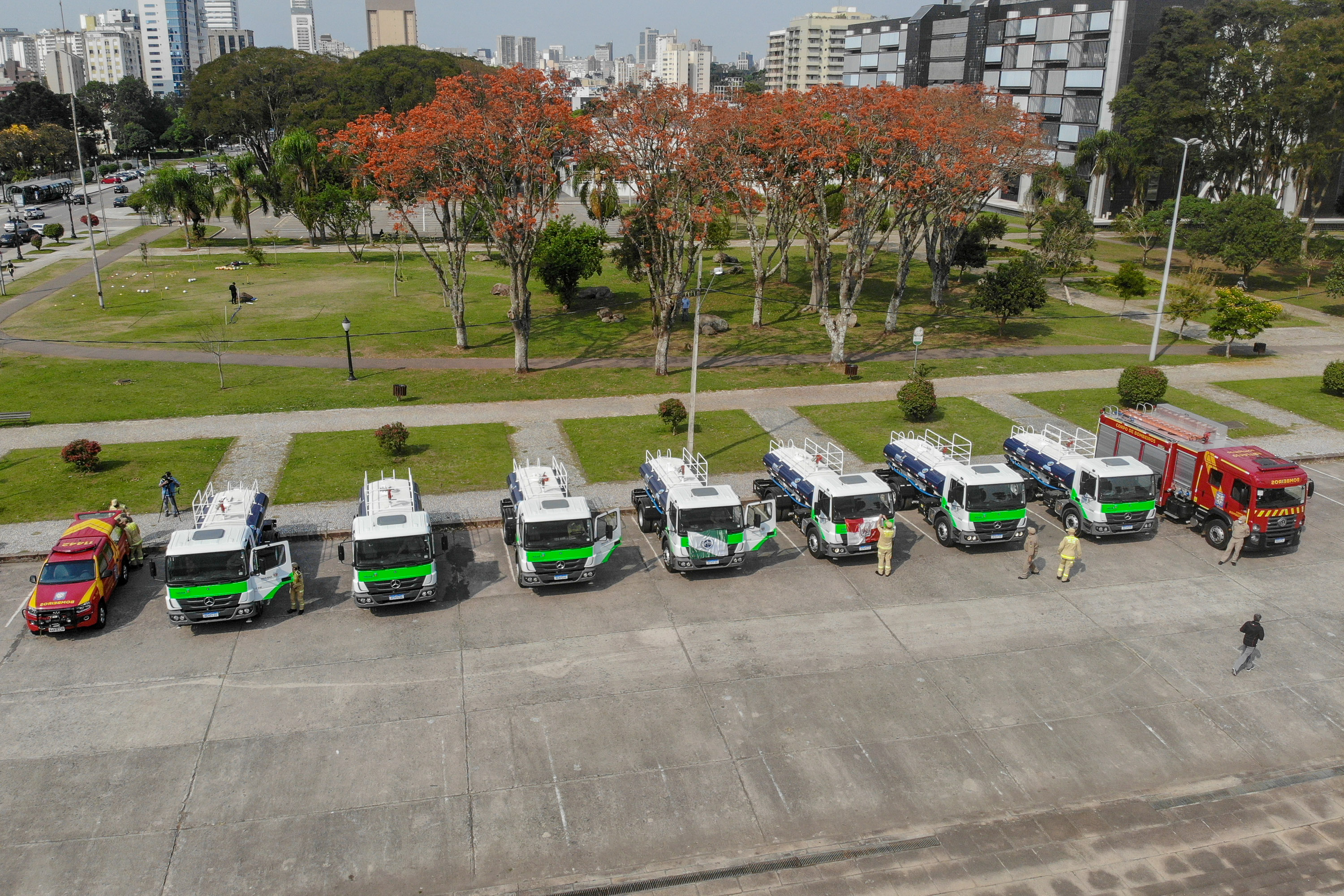 Na manhã de ontem (16) o Comandante do Corpo de Bombeiros, Cel. Samuel Prestes participou da entrega realizada pelo Governo do Estado de sete caminhões-pipa para auxiliar no combate às queimadas na região do Pantanal, no Mato Grosso do Sul.