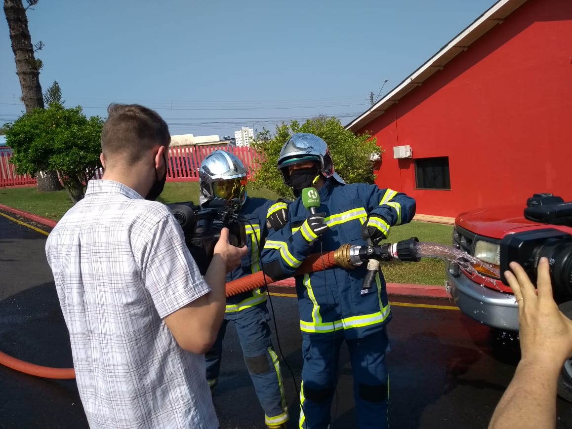 Durante a gravação o repórter Edinei Oldoni vestiu o EPI – Equipamento de Proteção Individual, armou linha de combate a incêndio e operou o esguicho regulável tipo pistola simulando um combate a incêndio, tendo a experiência de como é a sensação e a força desempenhada durante o atendimento a uma ocorrência dessa natureza.