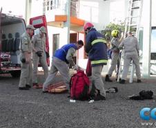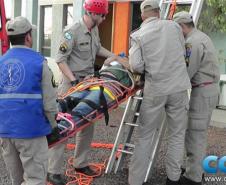 Equipes do 1°SGB/4° GB realizam um resgate em altura para a remoção de vítima de acidente de trabalho em Cascavel 22/07/2013 - 11:10