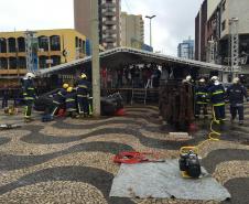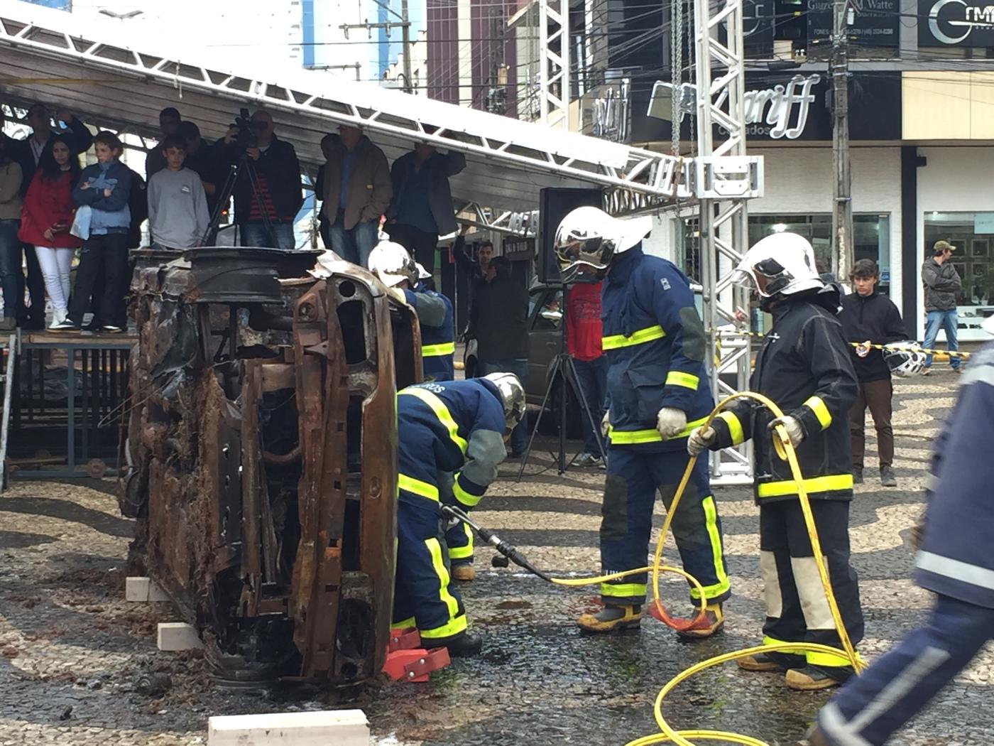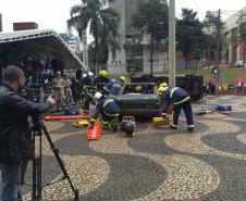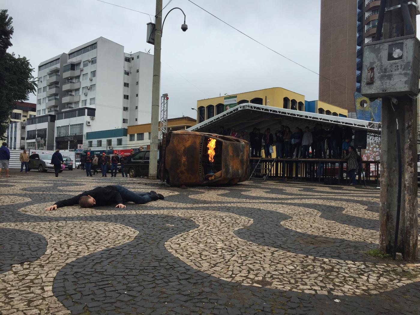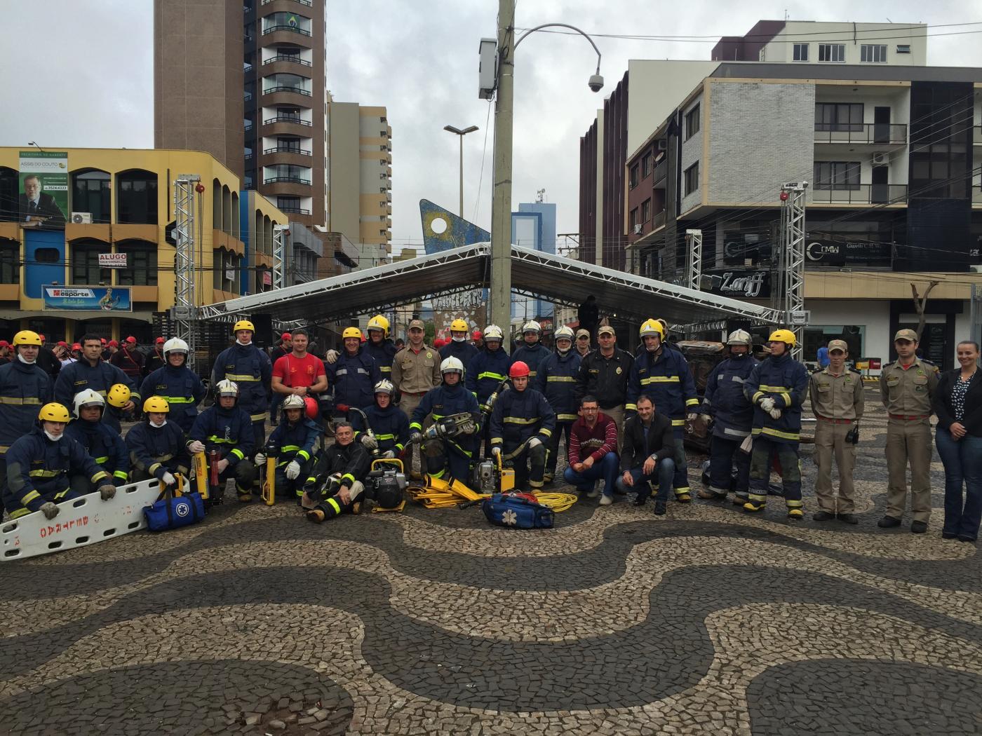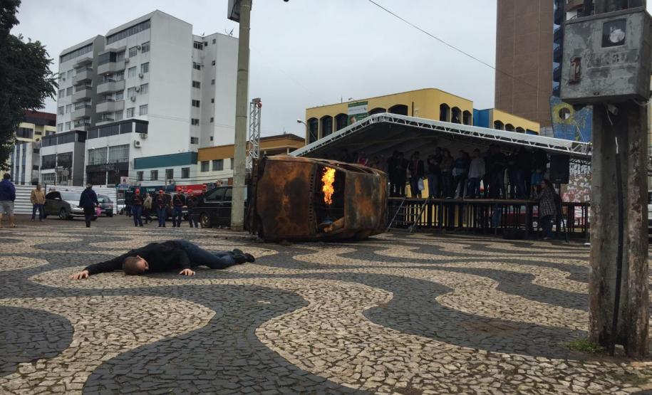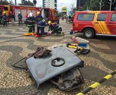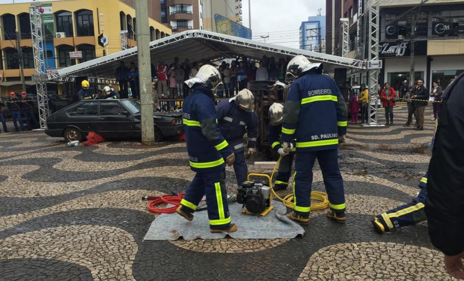 Durante o terceiro dia do estágio foi realizado um exercício simulado na praça central da cidade de Francisco Beltrão com a participação dos alunos do estágio. Atuando em uma situação hipotética de colisão auto-auto, com cinco vítimas envolvidas, as equipes de desdobraram para atender à ocorrência com rapidez e emprego das técnicas, utilizando os conhecimentos adquiridos durante os dias de treinamento.