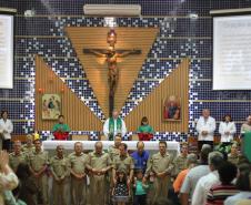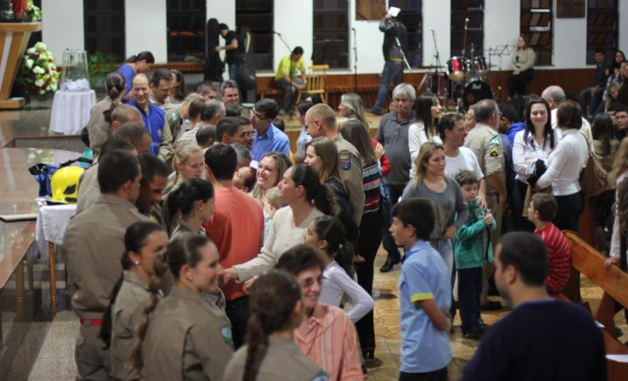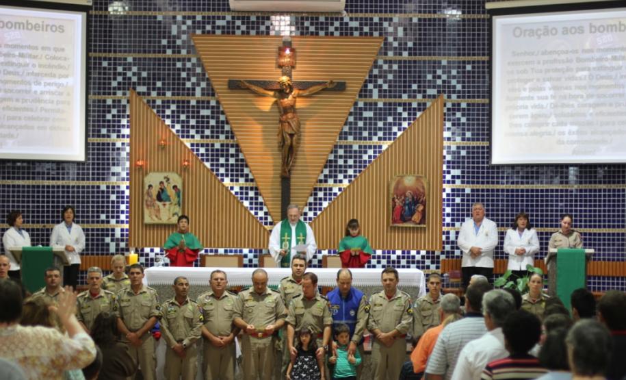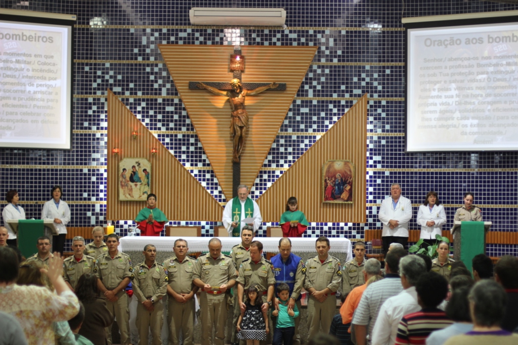 Finalizando a semana comemorativa, foi realizada uma Celebração Eucarística na noite do último sábado, dia 05. A missa foi celebrada na Paróquia Nossa Senhora Rainha dos Apóstolos e contou com uma grande participação da comunidade, sendo a equipe litúrgica composta por Bombeiros Militares do 4° Grupamento de Bombeiros e alunos do Curso de Formação de Soldados. Ao término da celebração, foi realizada uma benção especial pelo Celebrante e cantado os parabéns pela data por toda a comunidade, que aproveitou a oportunidade para cumprimentar os Bombeiros-Militares presentes e desejar a Paz de Cristo.