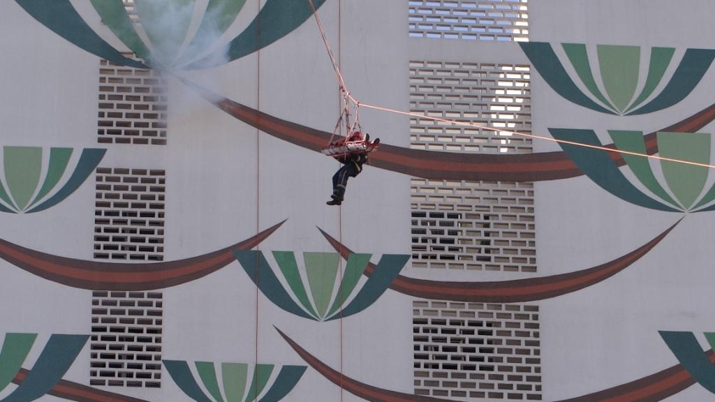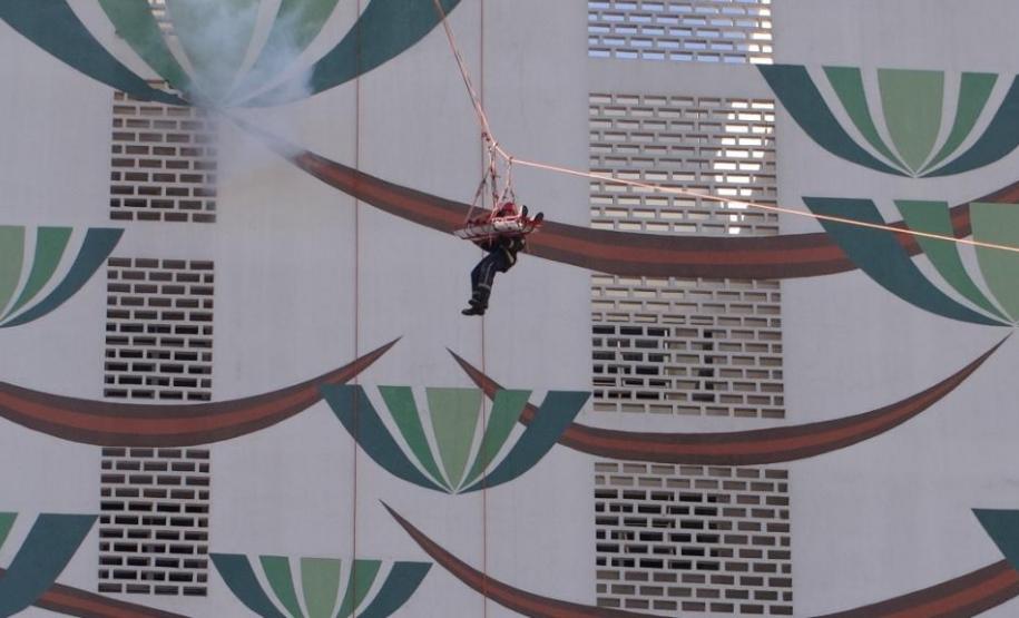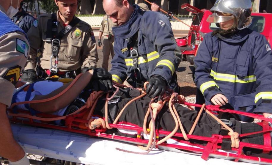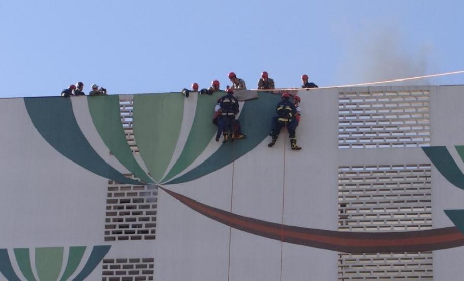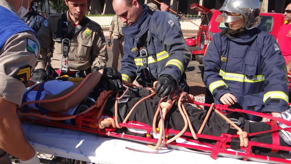 Também de forma a aproximar a comunidade do serviço prestado pelo Corpo de Bombeiros, o 1° SGB e os alunos do Curso de Formação de Soldados realizaram uma apresentação técnico-profissional na última sexta-feira (04). O evento, realizado em um dos edifícios da rede hoteleira, qual é um cartão-postal turístico do município, despertou a curiosidade das pessoas que passavam pelo local, as quais acompanharam a apresentação de um simulado que consistiu no atendimento a uma ocorrência de incêndio em edificação e evacuação de vítimas utilizando técnicas de salvamento vertical. A semelhança com uma situação real foi tanta que a Central de Operações recebeu diversos chamados, no qual o telefonista de emergência orientou os solicitantes sobre a realização de um simulado técnico-profissional e indicou para que os mesmos deslocassem até o local para acompanhar a atividade.